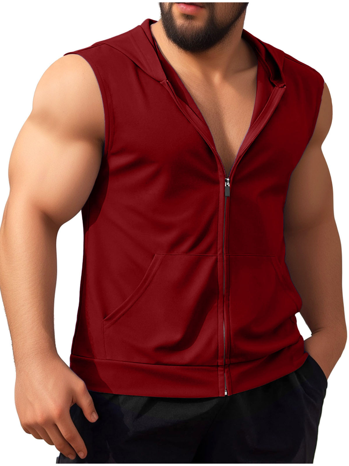 2024 Летняя новая внешняя торговля мужской без рукавов с капюшоном для отдыха спортивный сплошной жилет