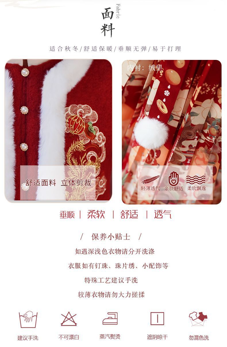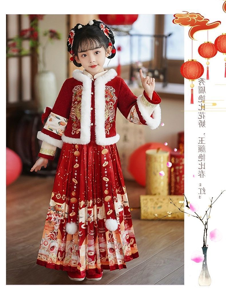 Новогодний наряд для девочек, праздничный зимний стиль, юбка-мамян, новая осенне-зимняя детская одежда Ханьфу 2024 года для зимы.
