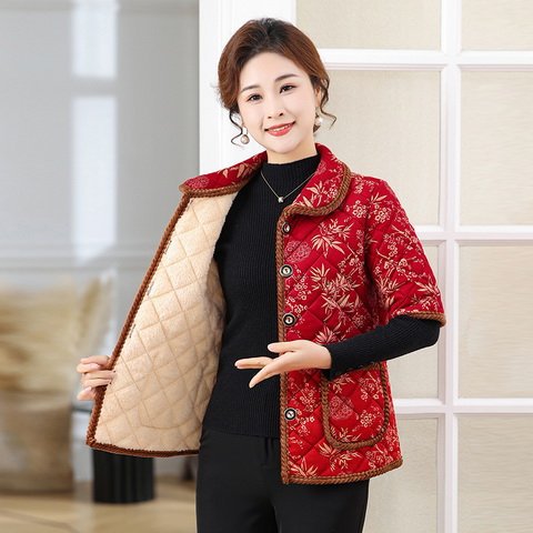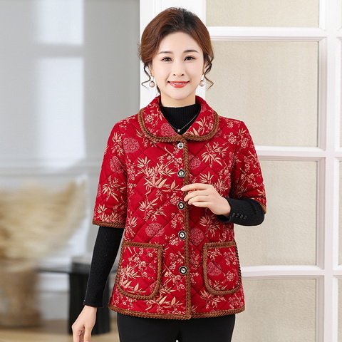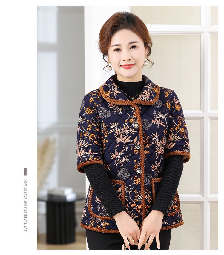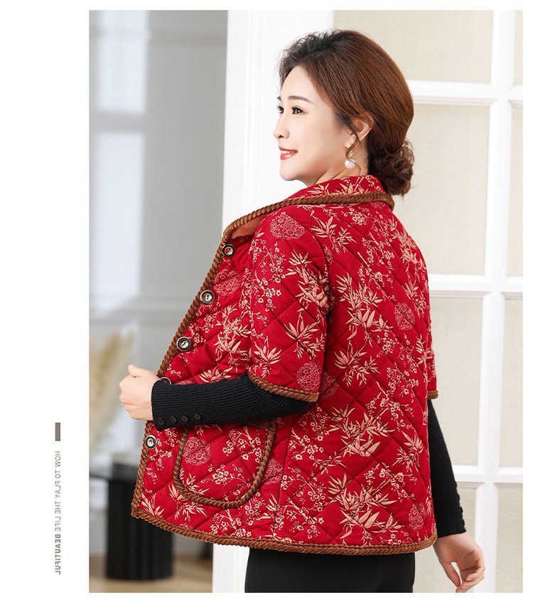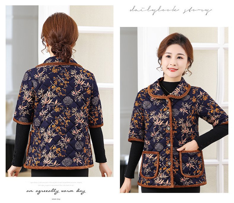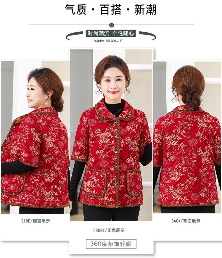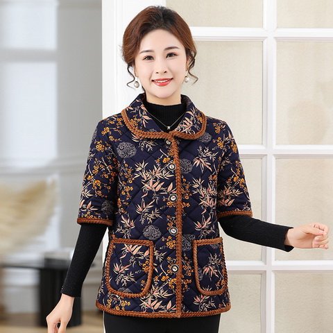 Осенний и зимний средний и старый полурукав хлопковый жилет женский толстый 2024 новый стиль мамы хлопковое пальто конюшни семь очков рукава бабушка плечо