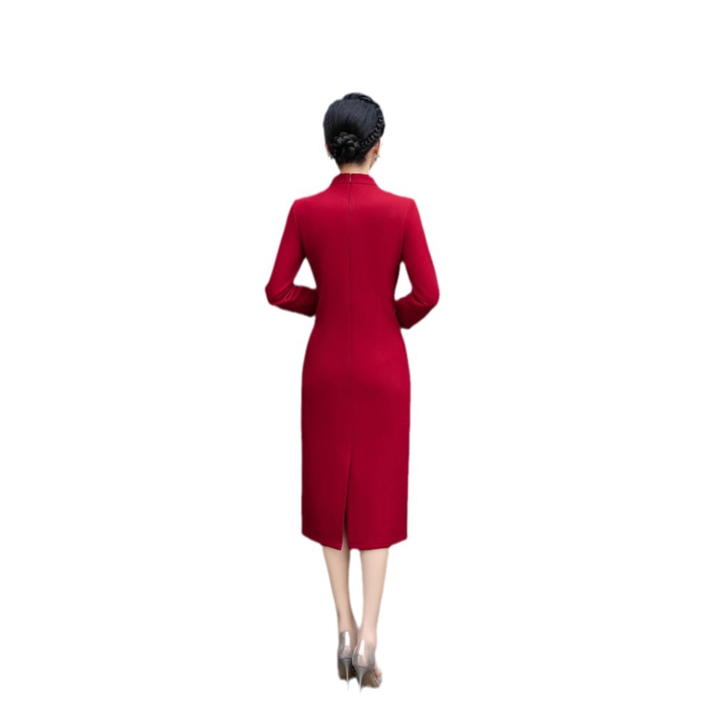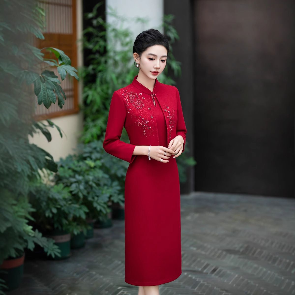 Изысканный весенне-осенний стиль: улучшенный чонсам, новая модель 2026 года для свадебного банкета матери-воспитателя, свадебное платье, имитация двухслойного наряда с элегантным шармом.