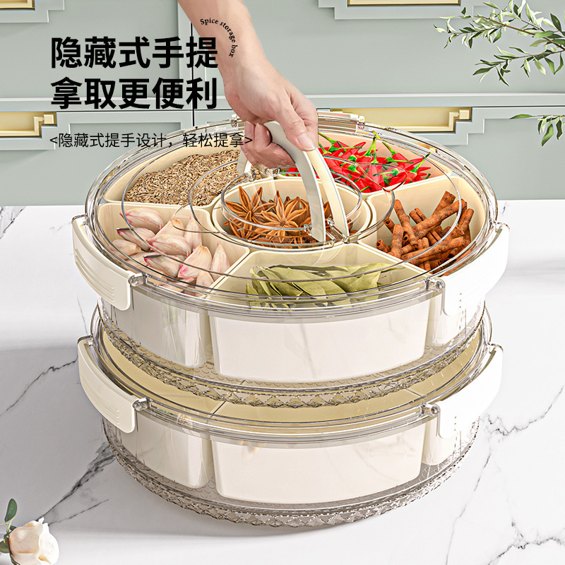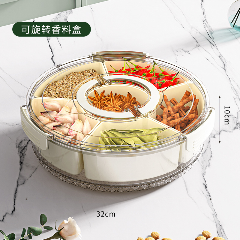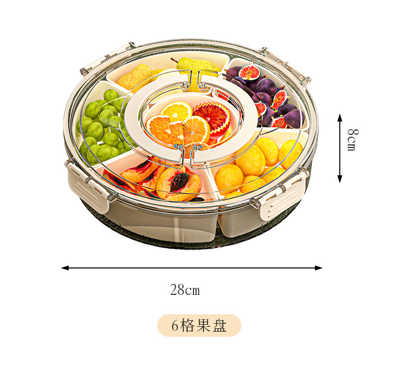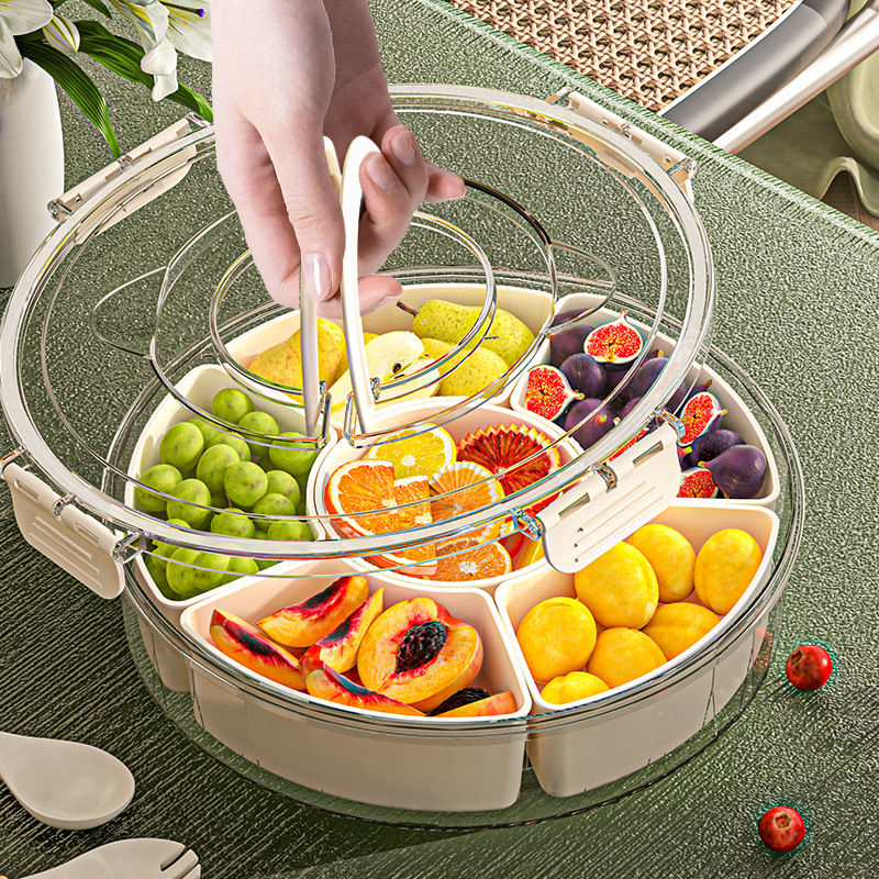 Вращающийся поднос для фруктов с шестью отделениями и ручкой, герметичный влагонепроницаемый поднос для сухофруктов, контейнер для специй, большой бытовой контейнер для закусок с крышкой