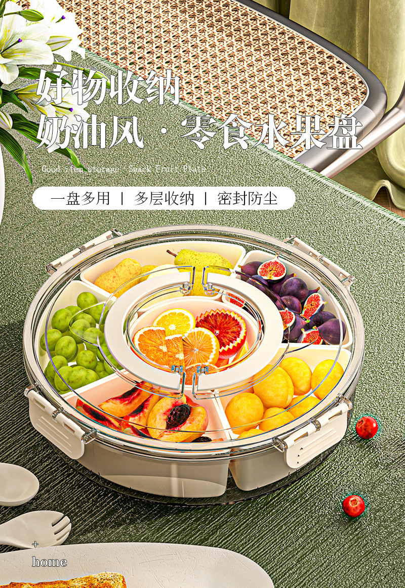 Маленькая тарелка для фруктов с шестью отделениями (вращающаяся с ручкой); Большая фруктовая тарелка с шестью отделениями (не вращающаяся, с ручкой); Большая тарелка для фруктов с шестью отделениями (вращающаяся с ручкой); Маленькая шестисекционная фруктовая тарелка из полипропилена (вращающаяся с ручкой)