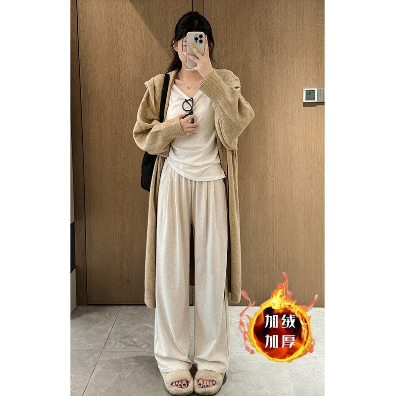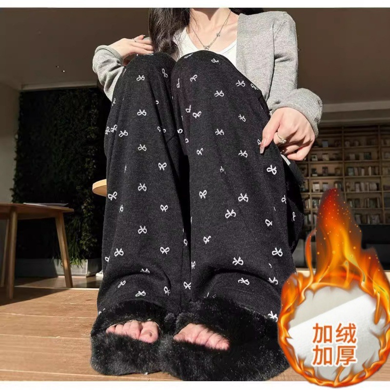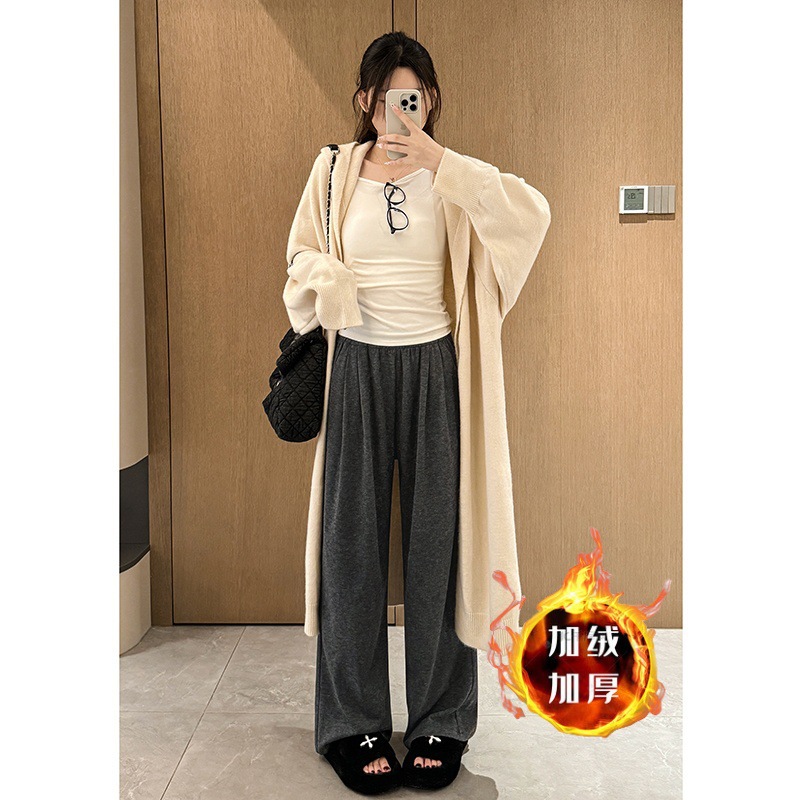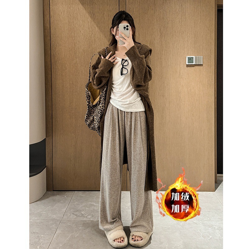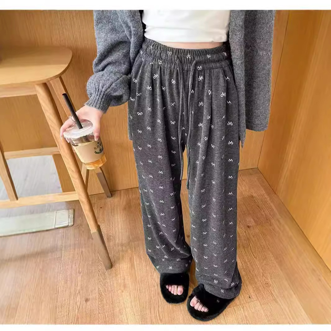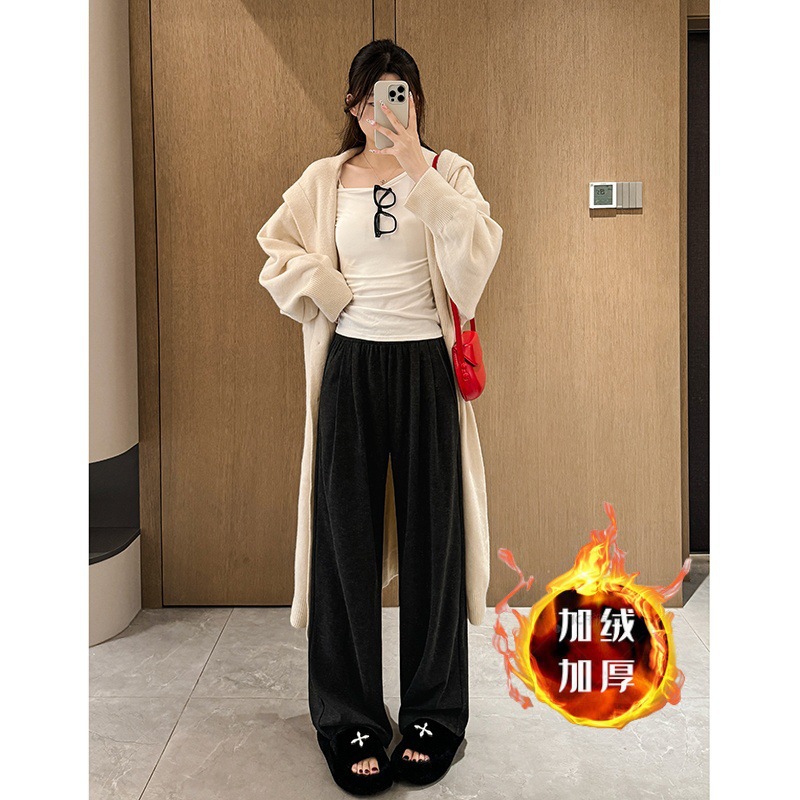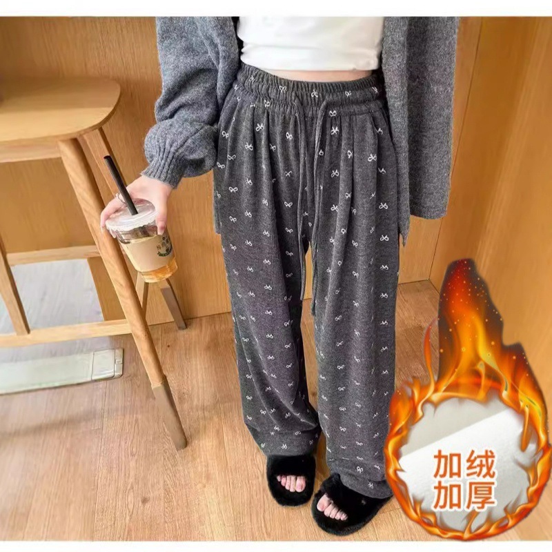 Клеевые рисовые брюки с бархатными широкими брюками для детей осенью и зимой новая высокая талия свободная тонкая повседневная брюки ленивый ветер