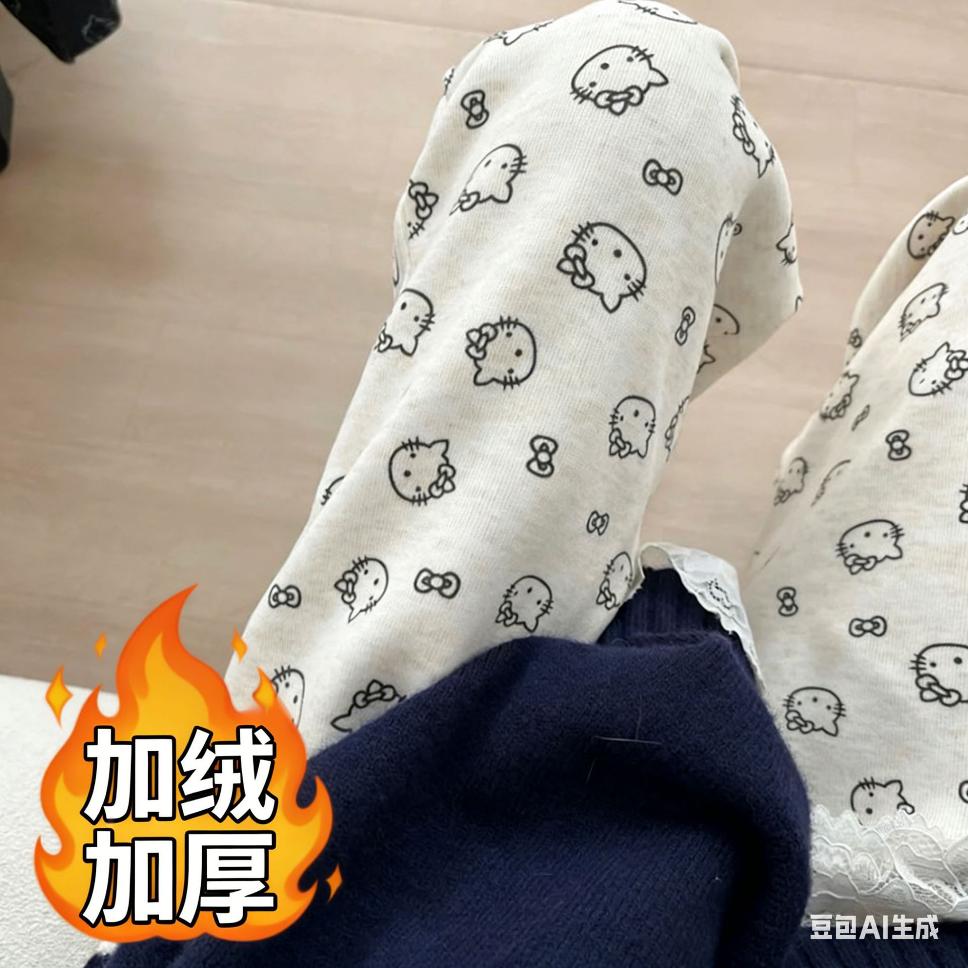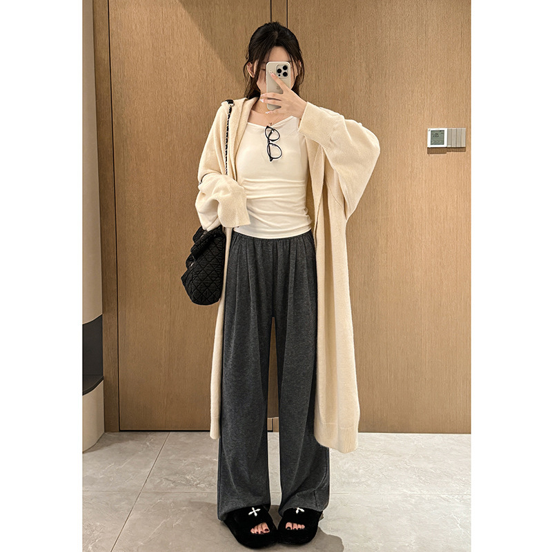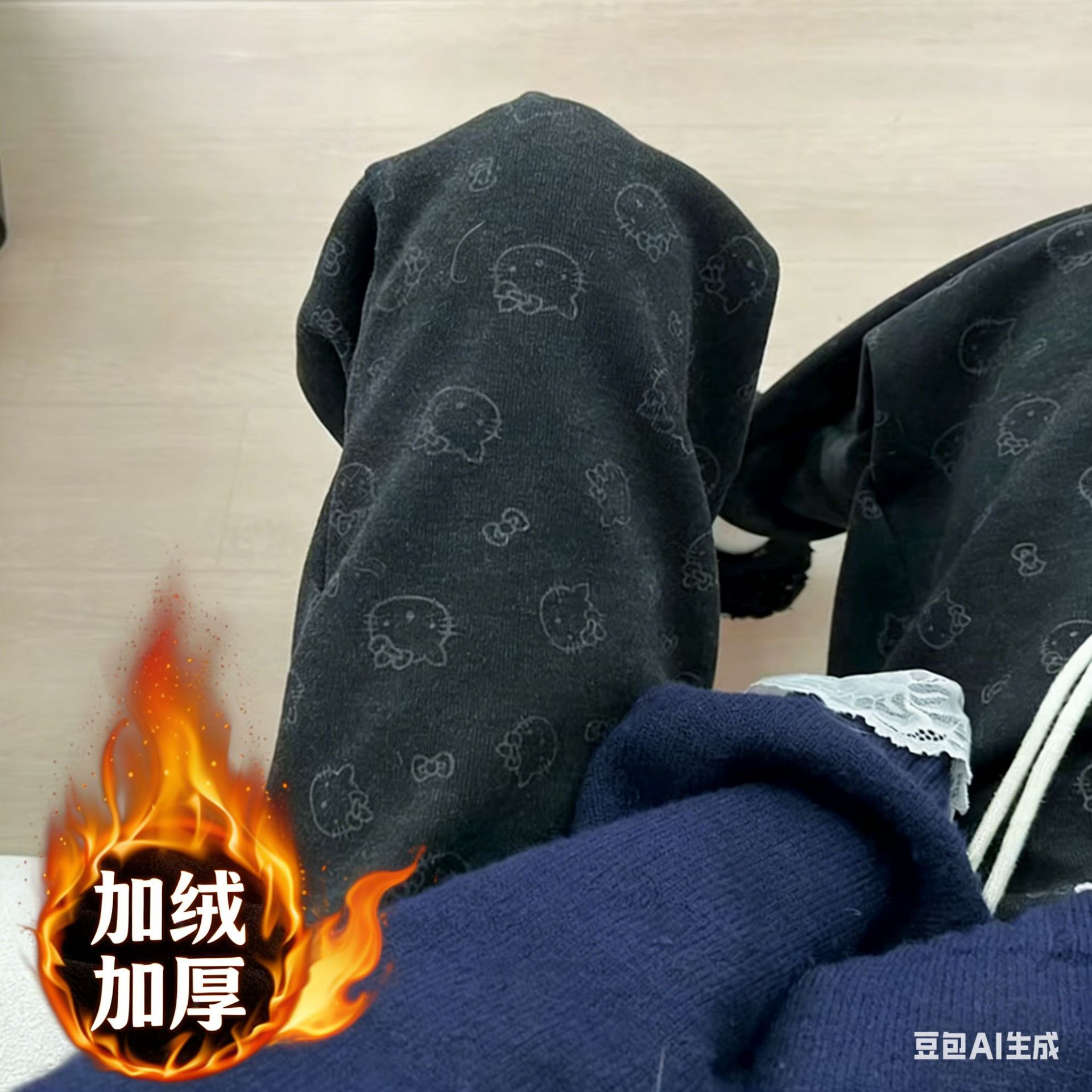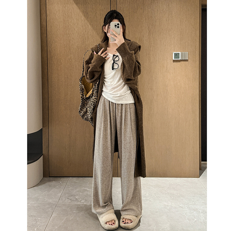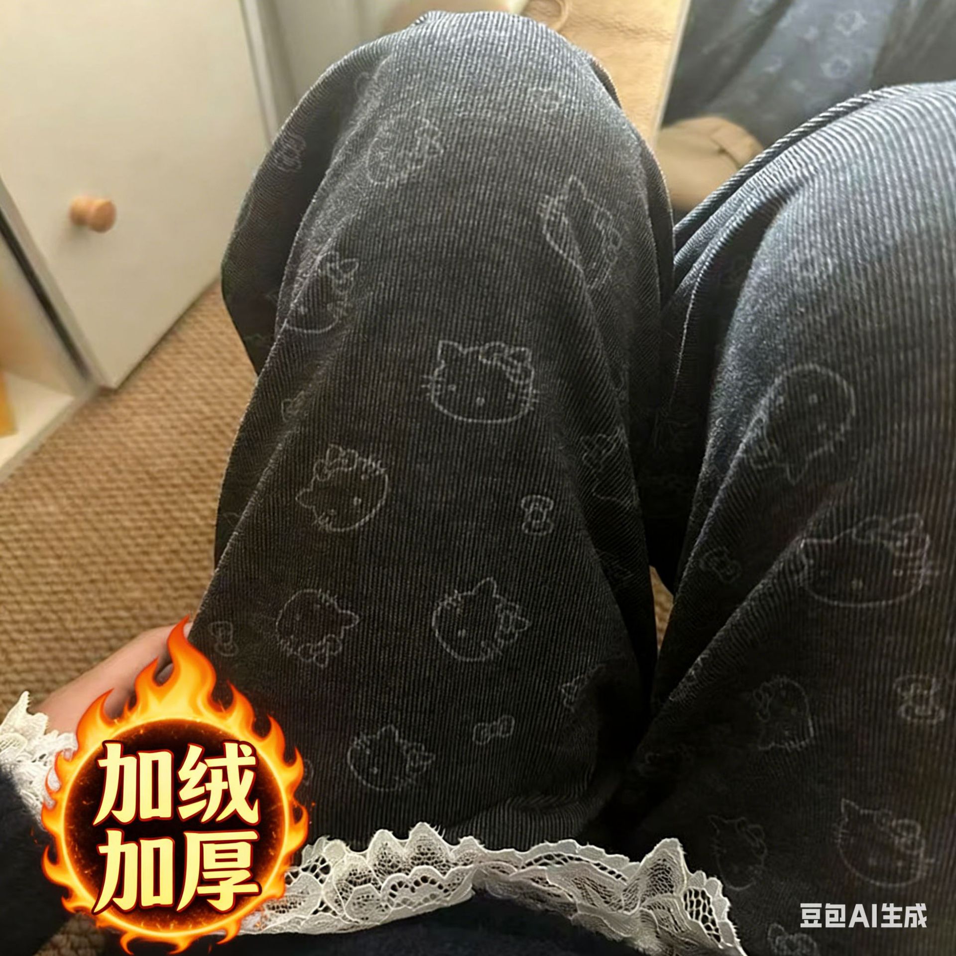 Клеевые рисовые брюки с бархатными широкими брюками для детей осенью и зимой новая высокая талия свободная тонкая повседневная брюки ленивый ветер