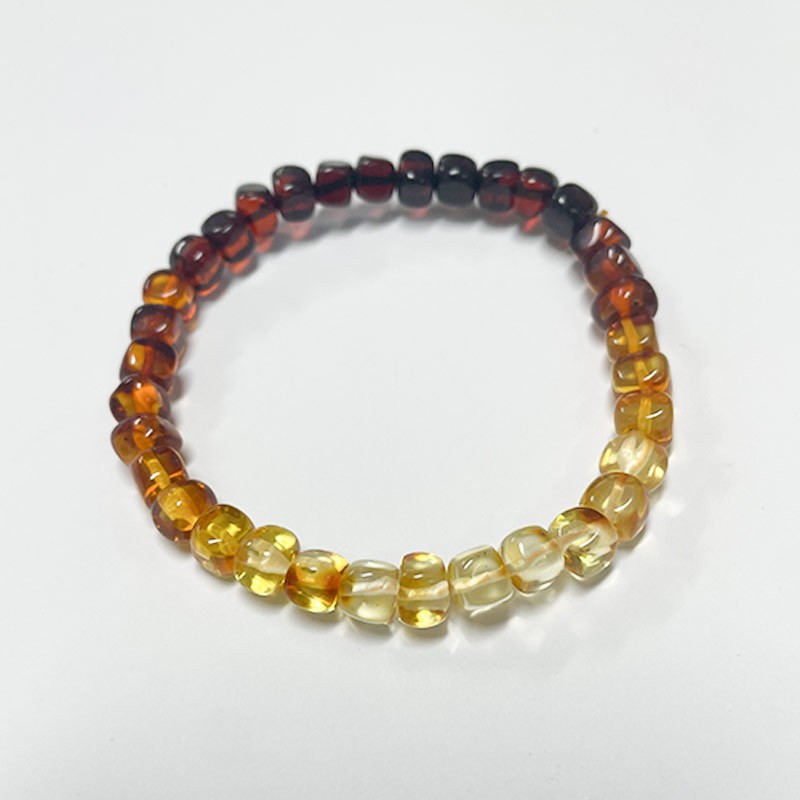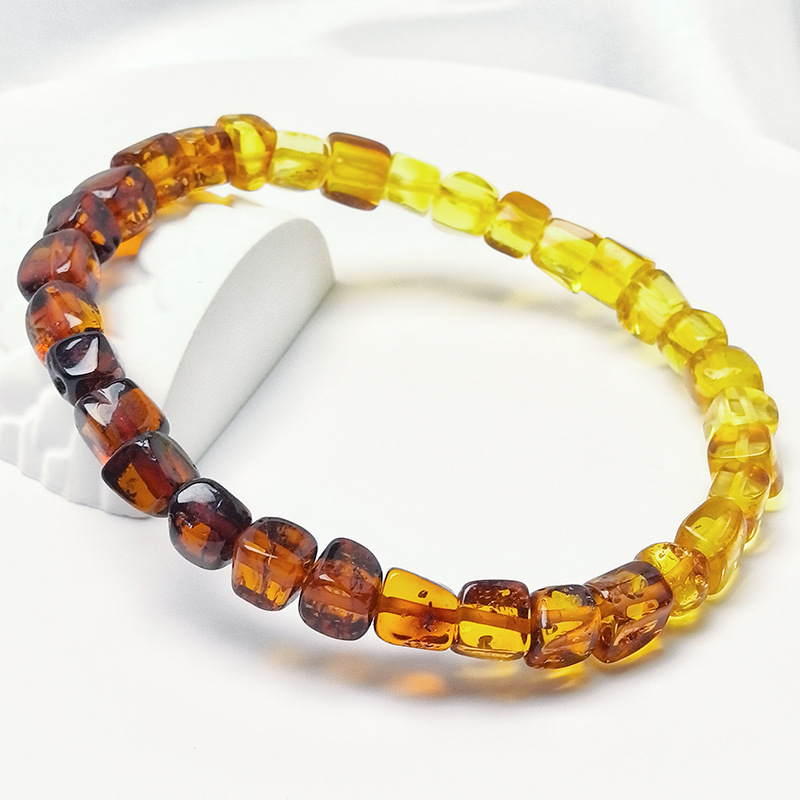 Браслет «Радужный сахарный кубик» из янтаря ~7,4 мм, вес около 6,9 г; Браслет «Радужный сахарный кубик» из янтаря ~ бусины диаметром 6 мм, вес около 4,5 г