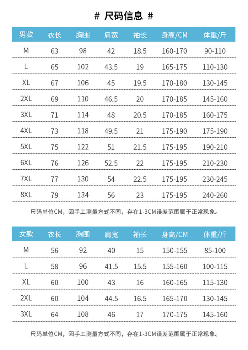 M; L; XL; XXL; XXXL; 4XL; 5XL; 6XL; 7XL; 8XL; L