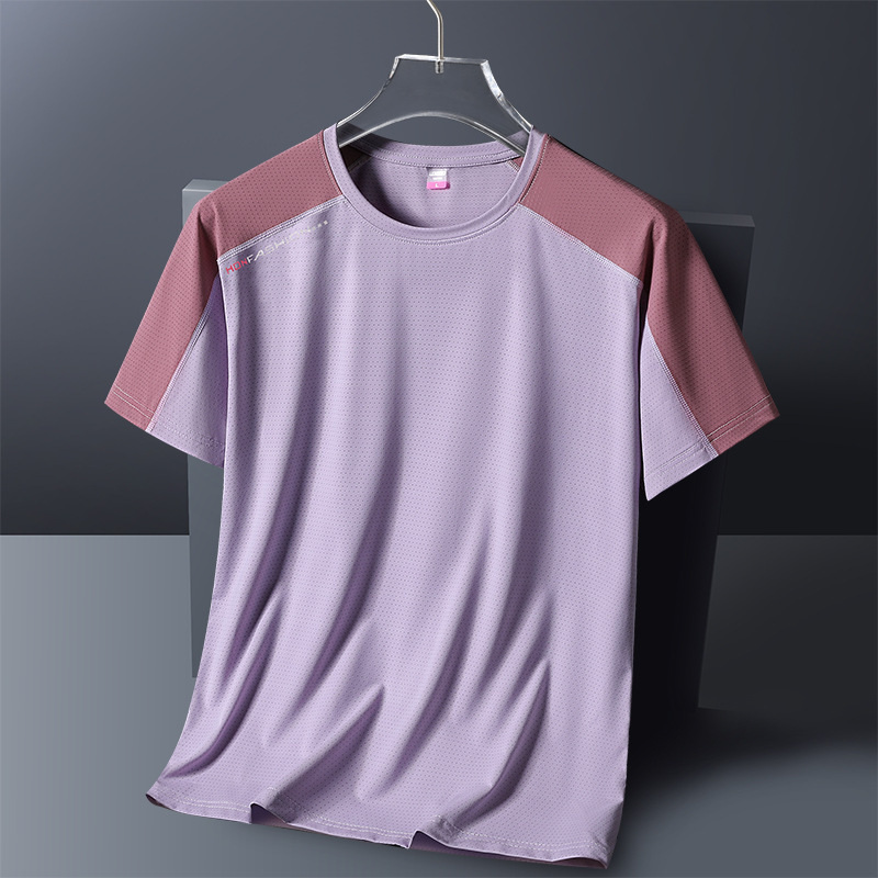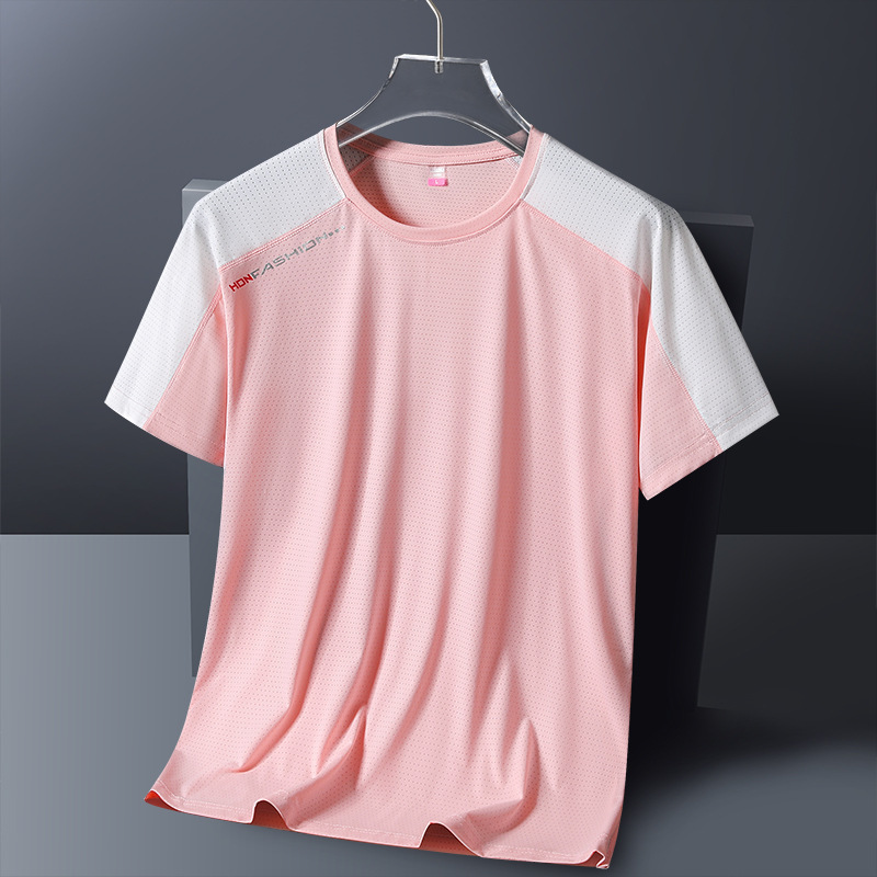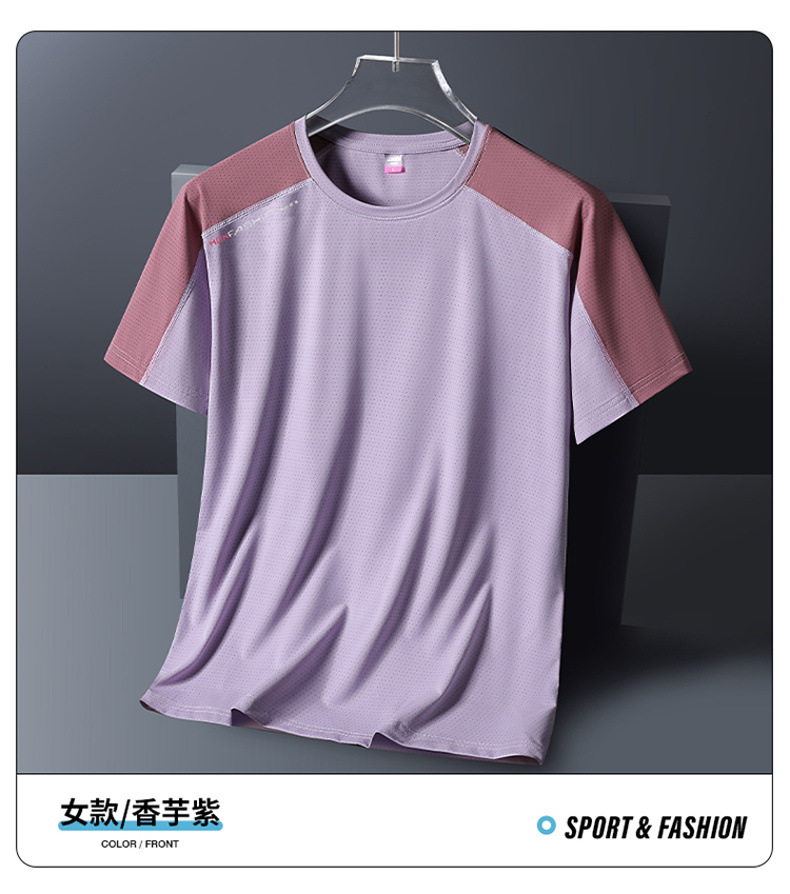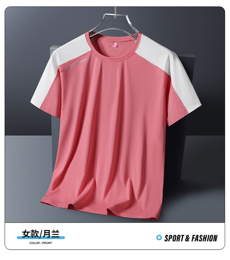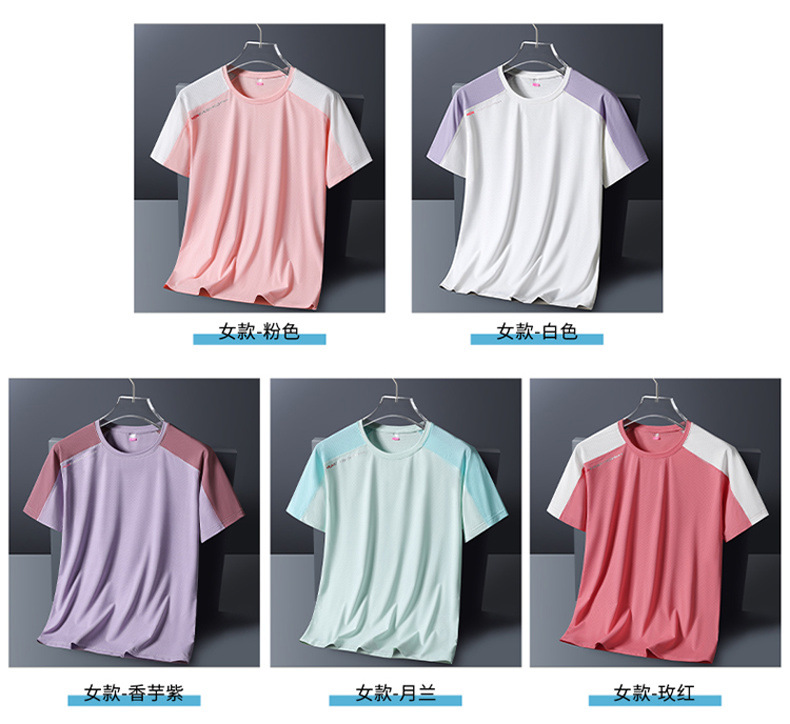 Летняя пара на открытом воздухе с короткими рукавами из ледяного шелка для мужчин быстрый сухой свободный большой размер спортивный досуг круглый воротник с полукругом для женщин оптовая покупка