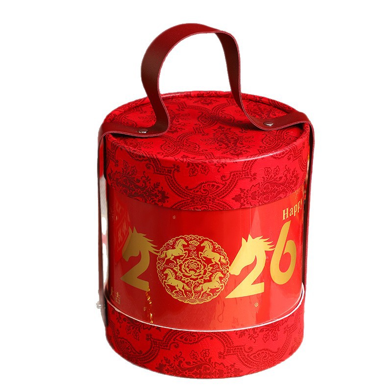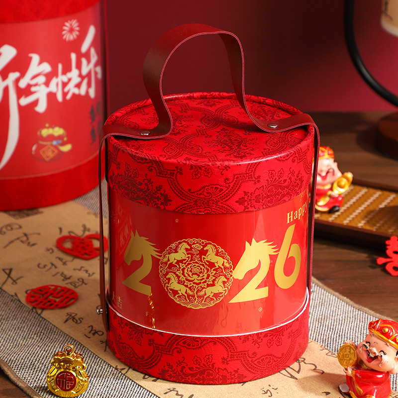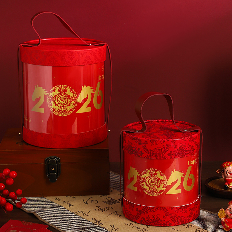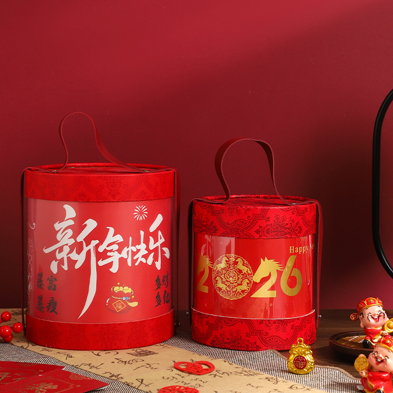 Пять благословений; гирлянды; рафия; Подарочная коробка с круглым бочонком 2026 года; Подарочная коробка с ведром с Новым годом; Подарочная коробка «Небо и Земля» 2026; Подарочная коробка Mayue New City с небом и землей