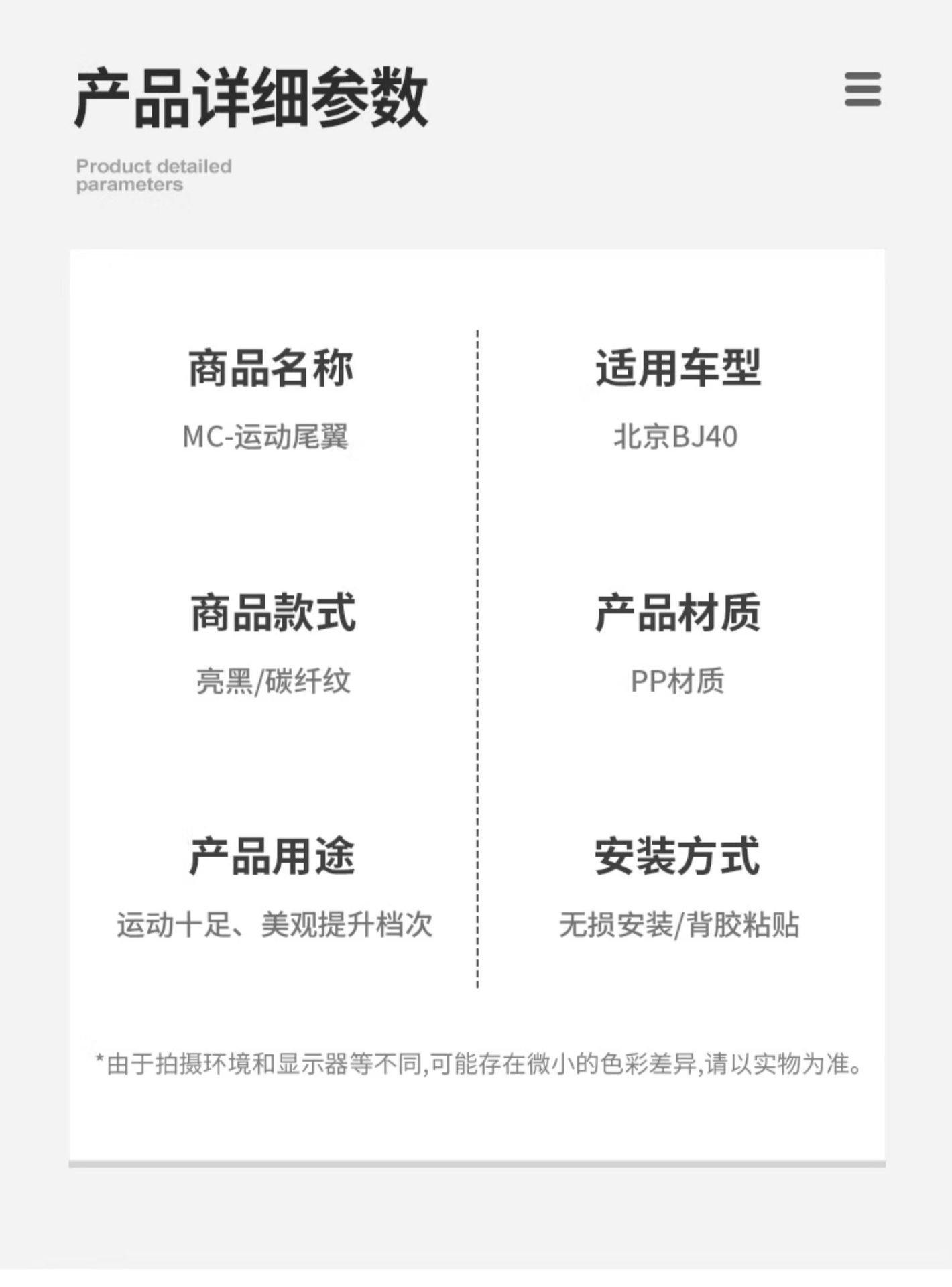 Подходит для специального спортивного заднего крыла BJ40C MC [глянцевый черный]; Подходит для специального спортивного заднего крыла BJ40C MC [узор из углеродного волокна]