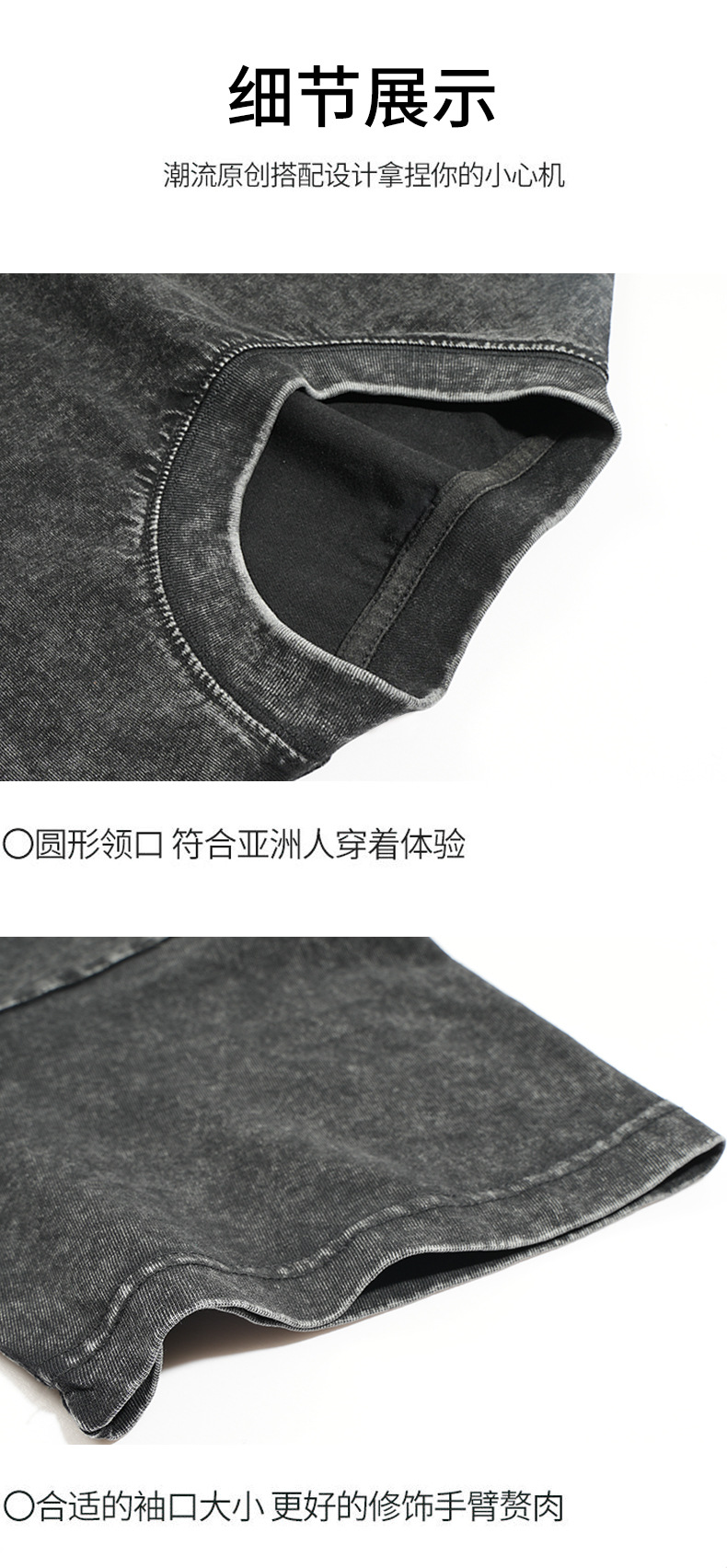 230 г стираная футболка с эффектом потертости по индивидуальному заказу в европейском и американском стиле ретро с жареной снежинкой, свободная мужская футболка с короткими рукавами из чистого хлопка с открытыми плечами и половиной рукава