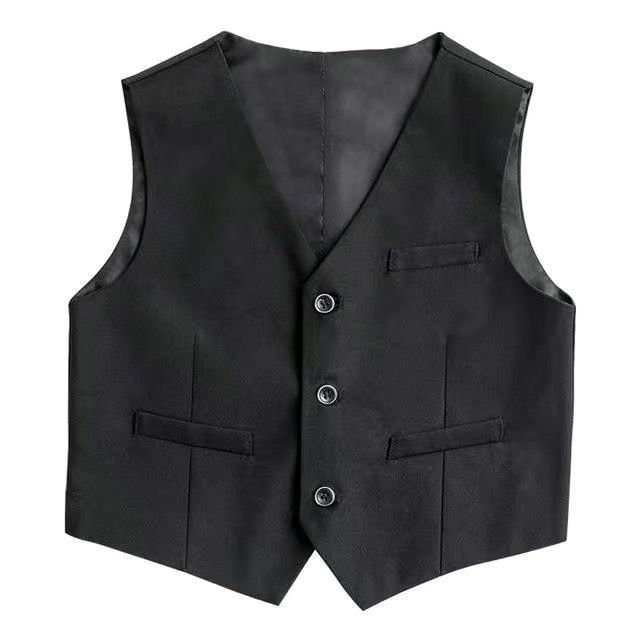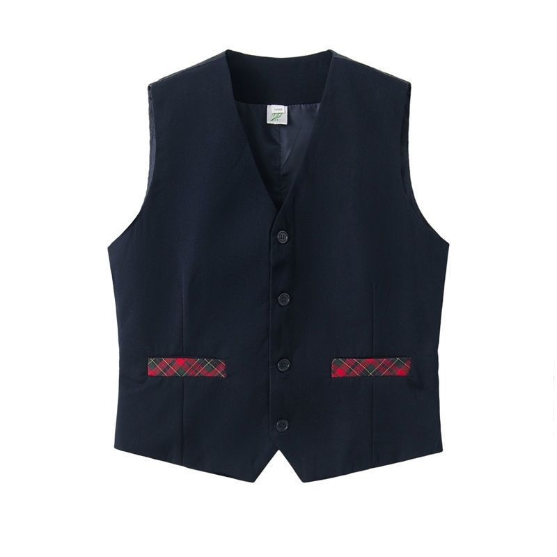 ткань жилета черный; Жилет в стиле B мужской стиль; Мужская рубашка; Короткий воротник с острым рукавом.; Школьные брюки темно-синие брюки на молнии; жилет белая ткань; Длинные рукава с круглым вырезом; Кружевные длинные рукава