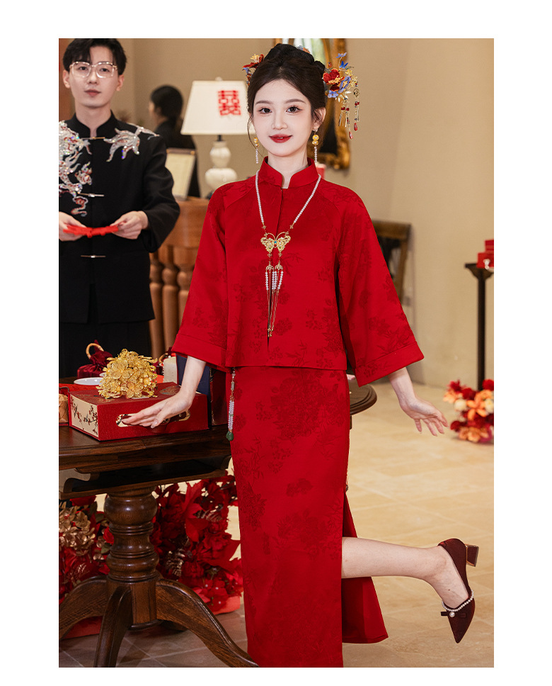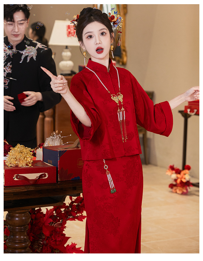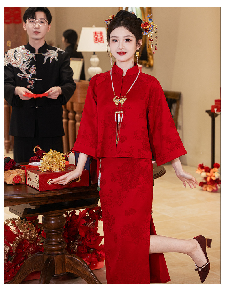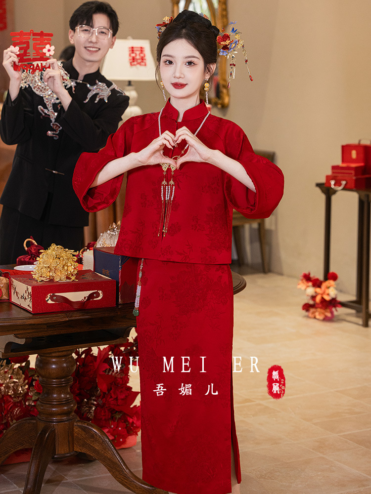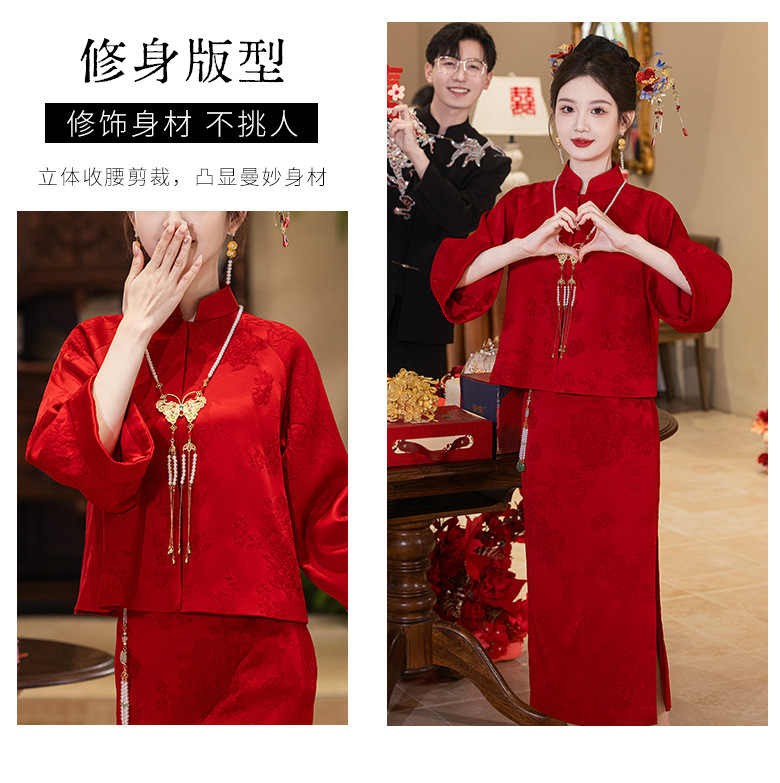 Новое свадебное платье в китайском стиле, осенняя коллекция 2025, новый дизайн, комплект из двух предметов для невесты малого роста, для выпускного вечера и банкета.