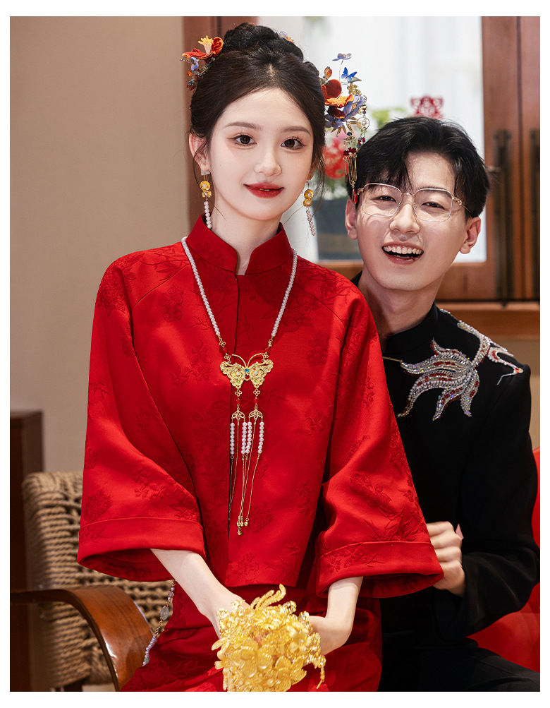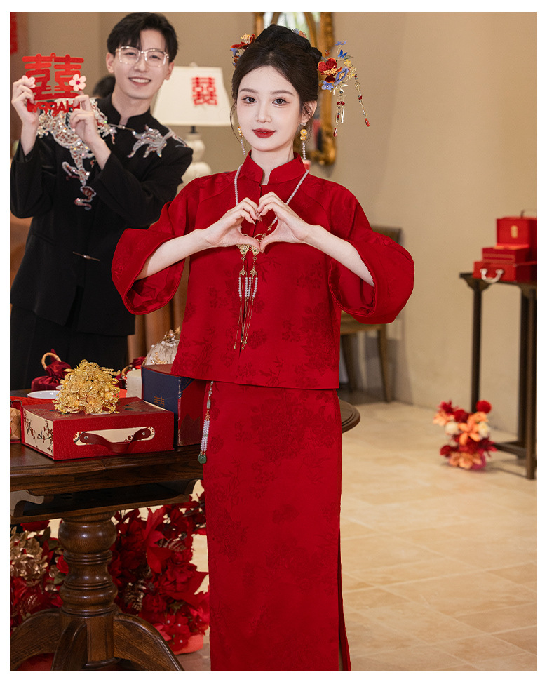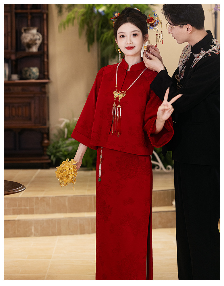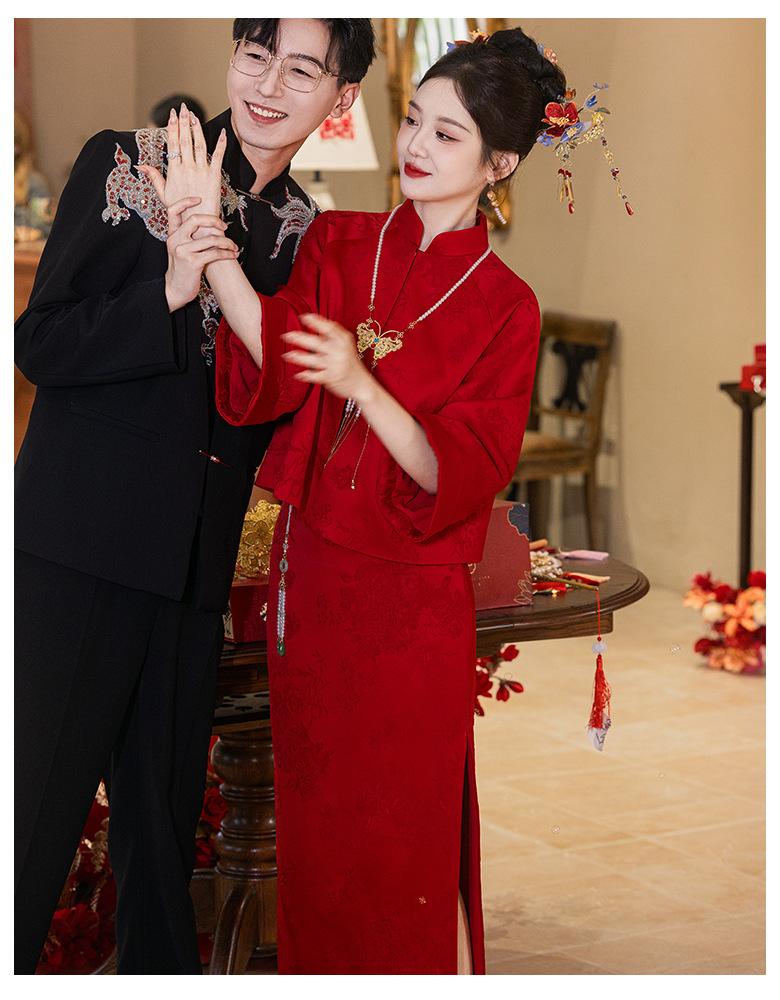 Новое свадебное платье в китайском стиле, осенняя коллекция 2025, новый дизайн, комплект из двух предметов для невесты малого роста, для выпускного вечера и банкета.