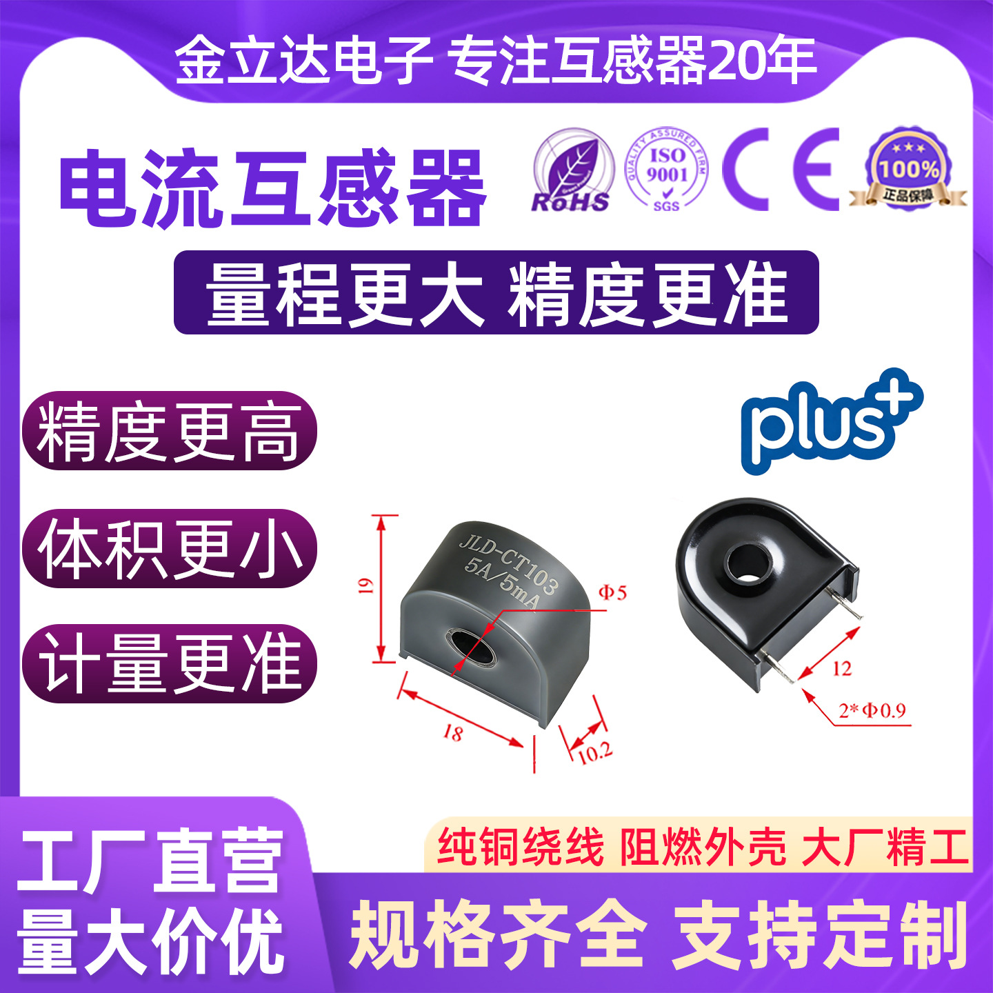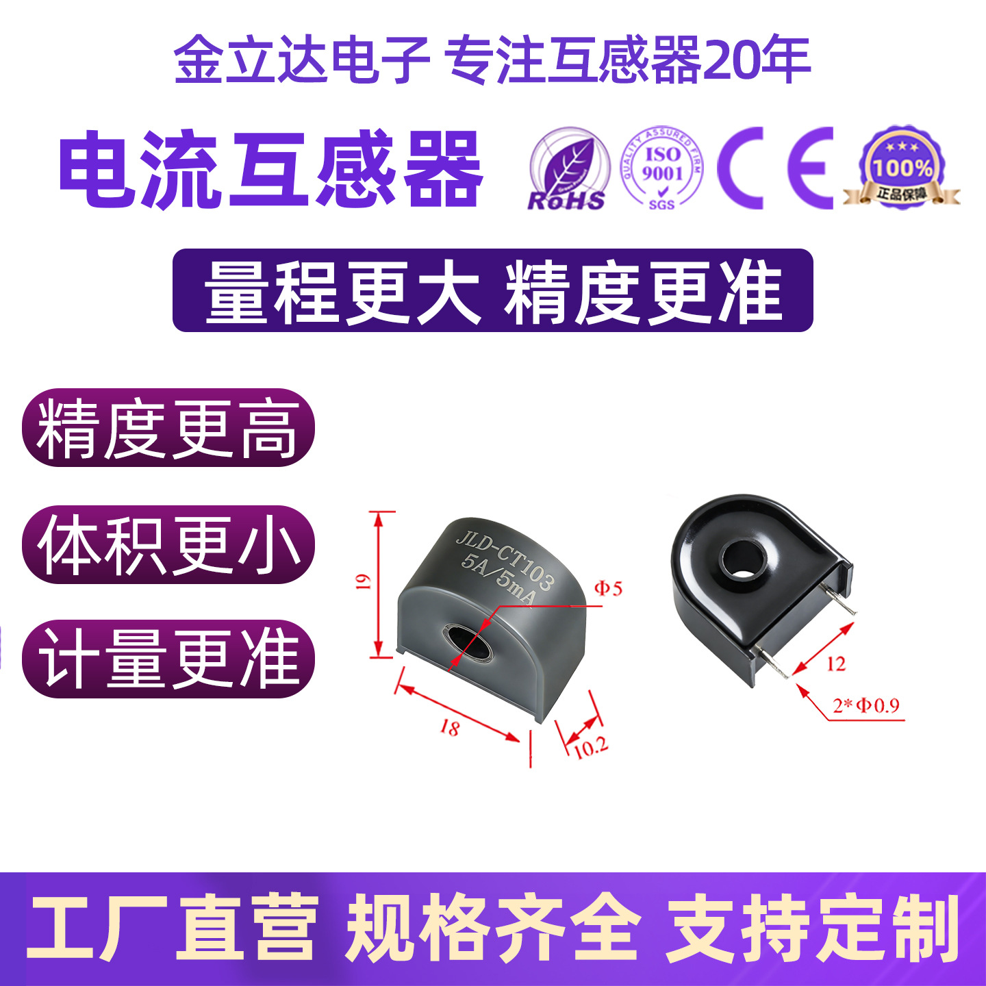Прецизионный миниатюрный трансформатор тока CT103-226A для печатных плат с проходными отверстиями, 5-контактный, с точностью 0.1.