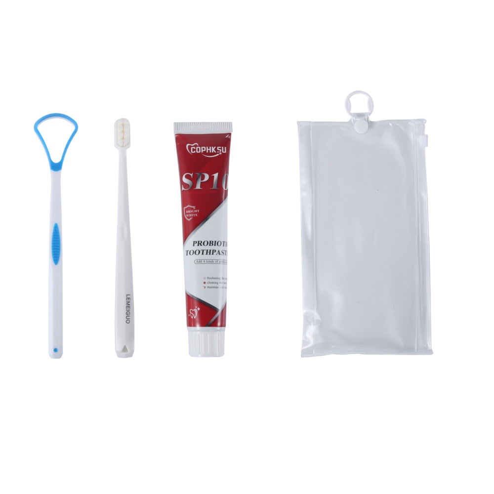Трансграничная индивидуальная зубная паста, зубная щетка, скребок для языка, пакет OPP, портативный набор туалетных принадлежностей «три в одном», домашний отель для путешествий
