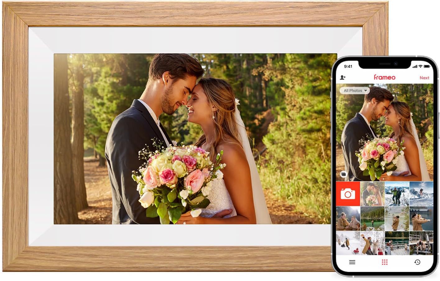 Трансграничный 10,1-дюймовый Frameo деревянная рамка цифровая фоторамка облачная фоторамка сенсорный экран WiFi удаленный APP электронный фотоальбом