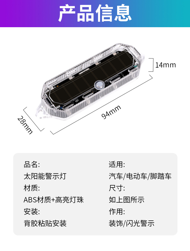 Автомобиль с солнечной зарядкой среднего сетевого освещения для езды на велосипеде в ночное время