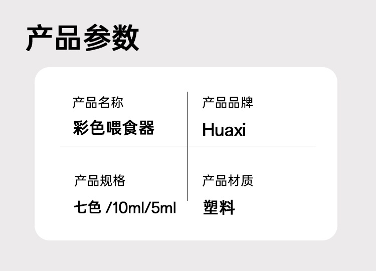 5 мл прозрачного цвета; 5 мл синий; 5мл зеленый; 5 мл розового цвета; 5 мл желтый; 5 мл фиолетовый; 5 мл оранжевый; 10 мл прозрачного цвета; 10 мл желтый; 10 мл синий; 10мл зеленый; 10 мл розового цвета; 10 мл фиолетовый; 10 мл оранжевый; Кормушка прозрачного цвета на 20 мл.; Кормушка прозрачного цвета объемом 30 мл.; Кормушка прозрачного цвета объемом 60 мл.