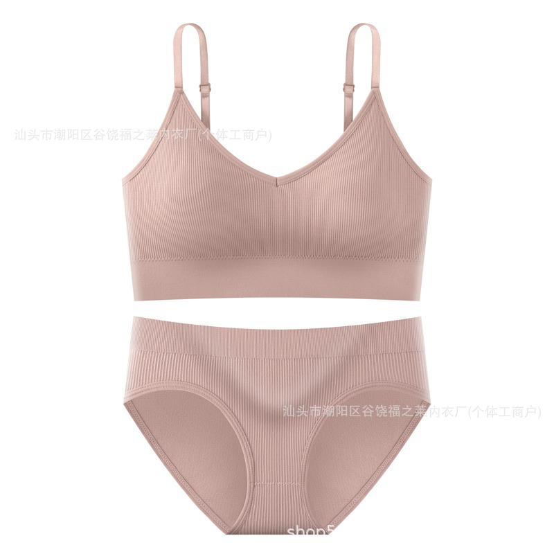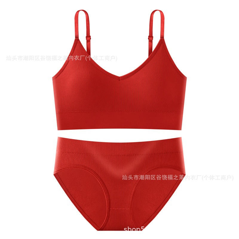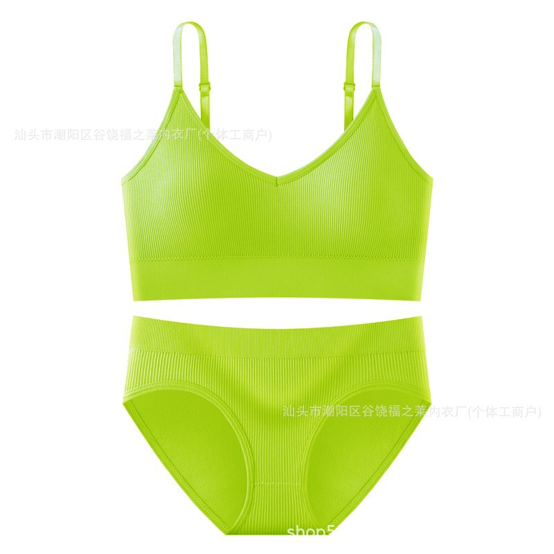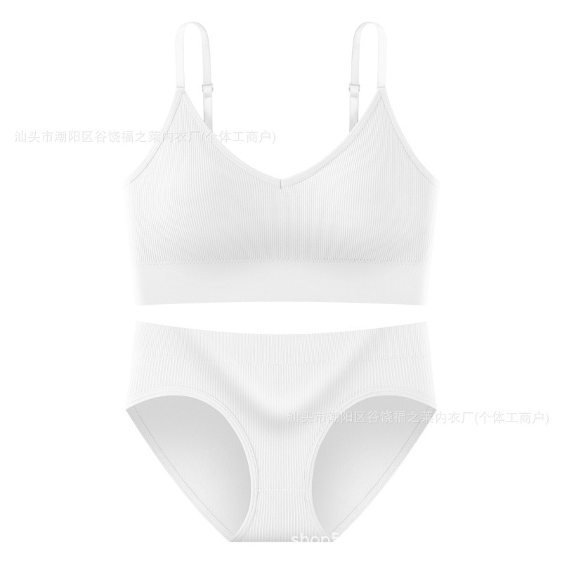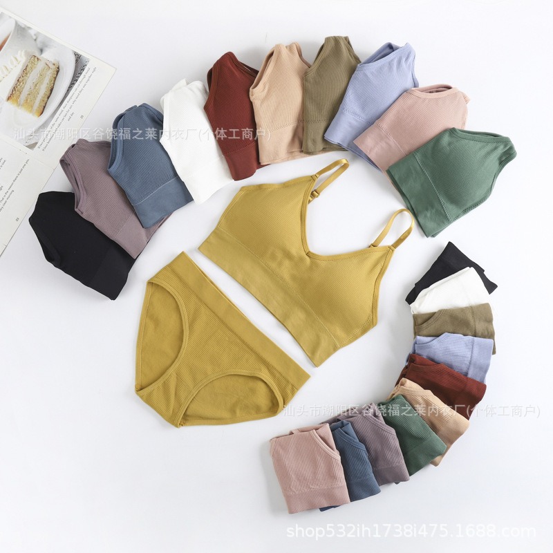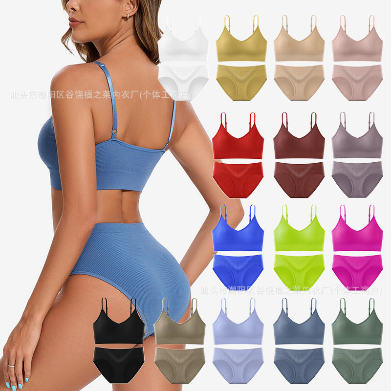 Трансграничный комплект с бюстгальтером большого размера для фитнеса, спорта, большой U-образный топ с красивой спинкой, бесшовные трусы с резьбой, верхняя одежда, нижнее белье для женщин