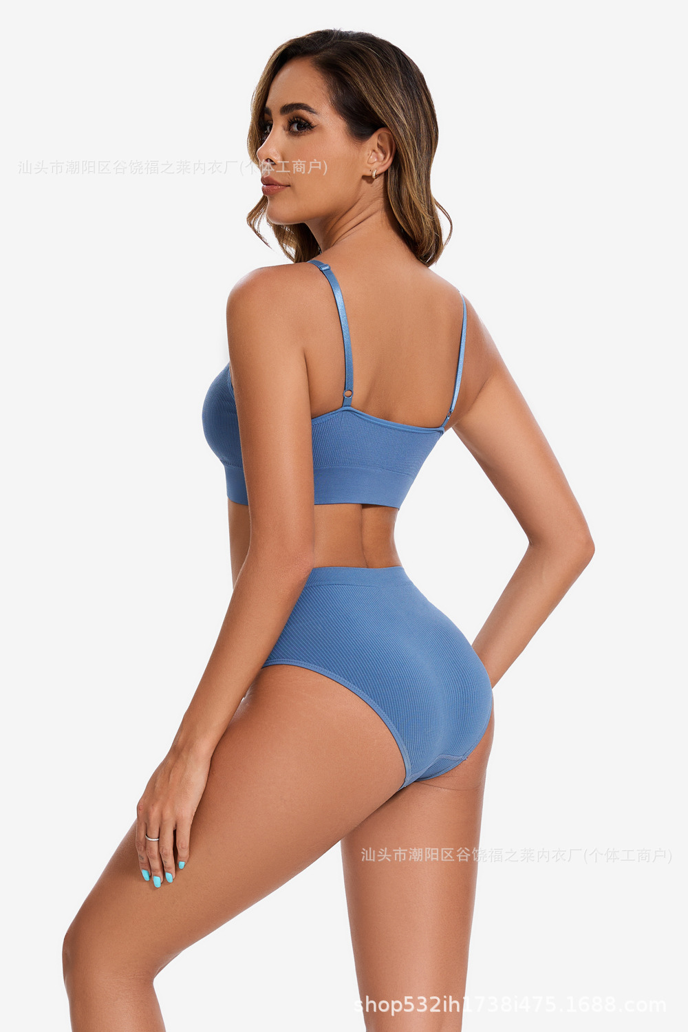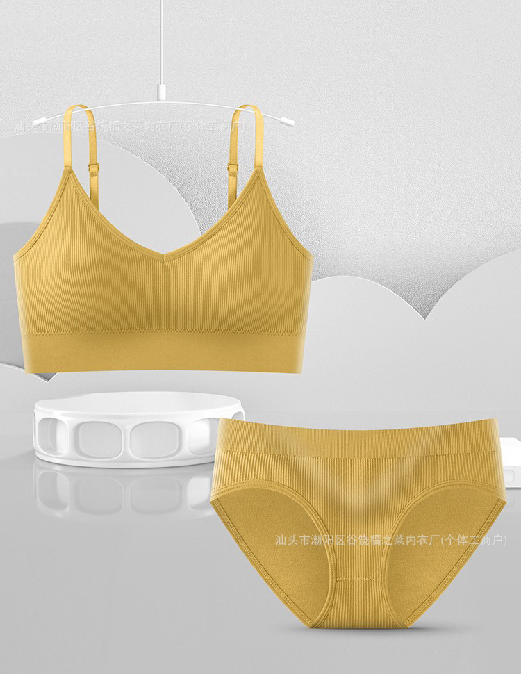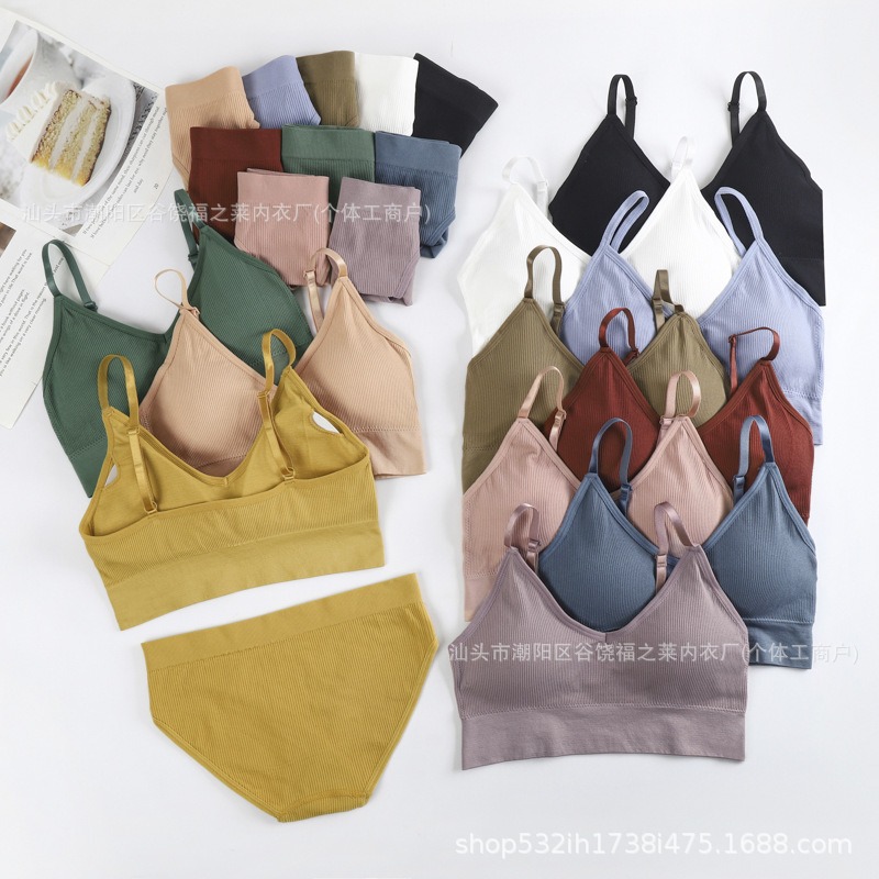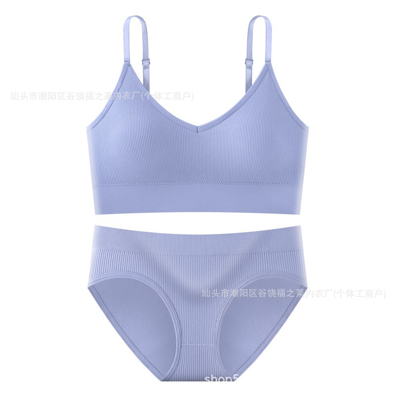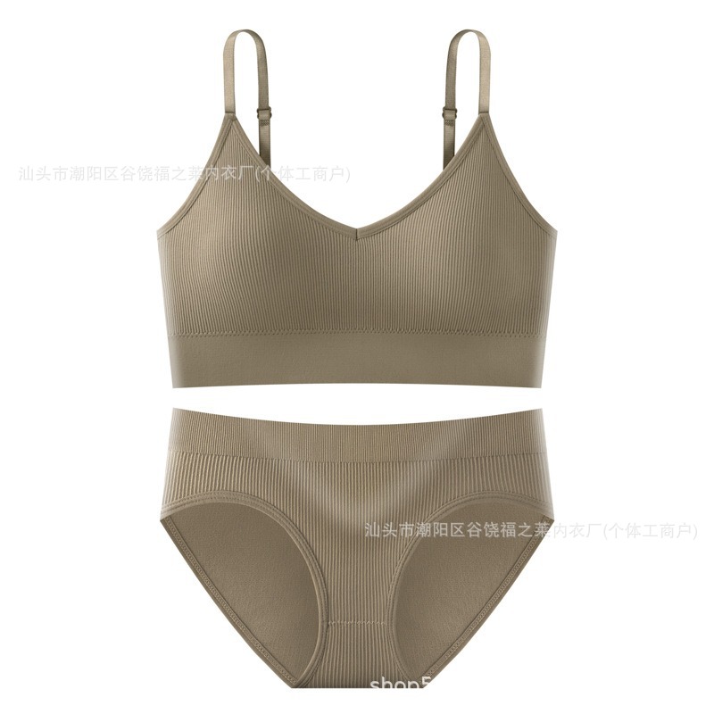 Трансграничный комплект с бюстгальтером большого размера для фитнеса, спорта, большой U-образный топ с красивой спинкой, бесшовные трусы с резьбой, верхняя одежда, нижнее белье для женщин