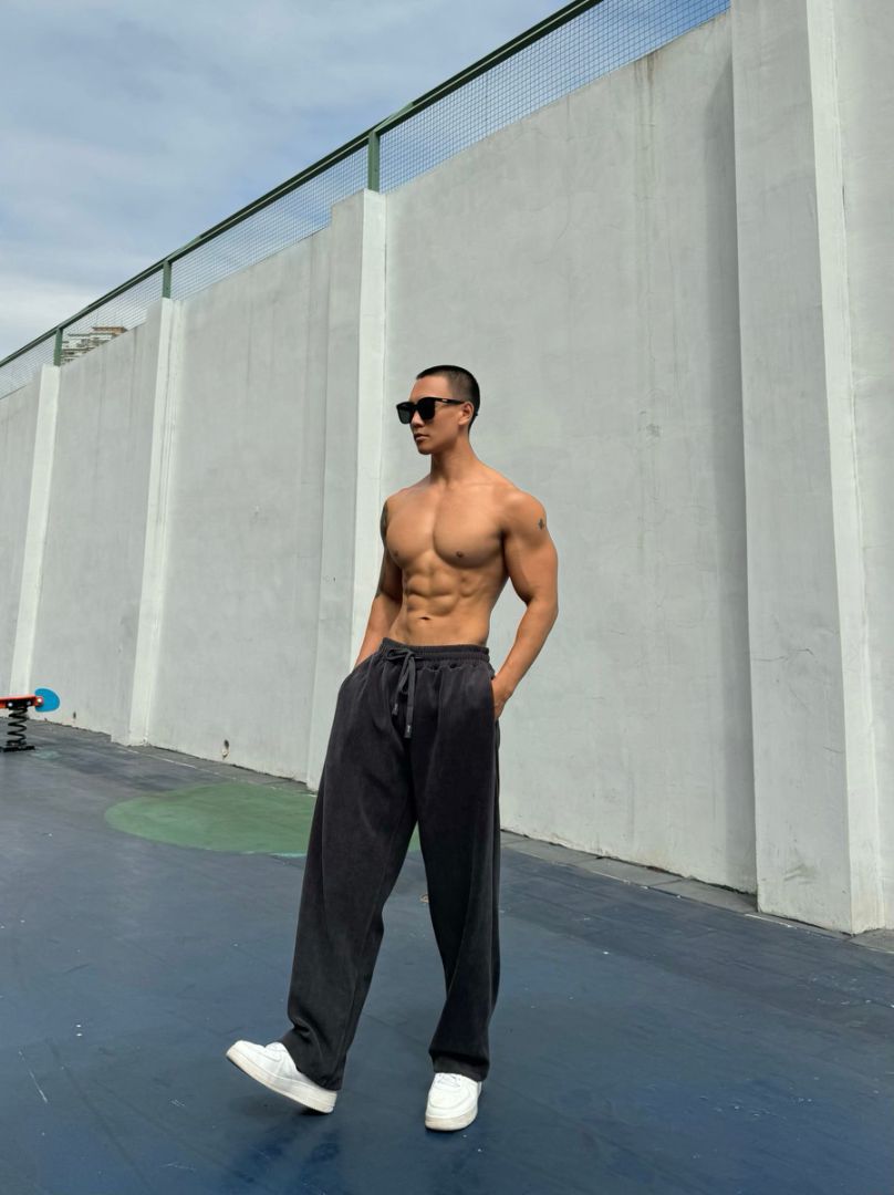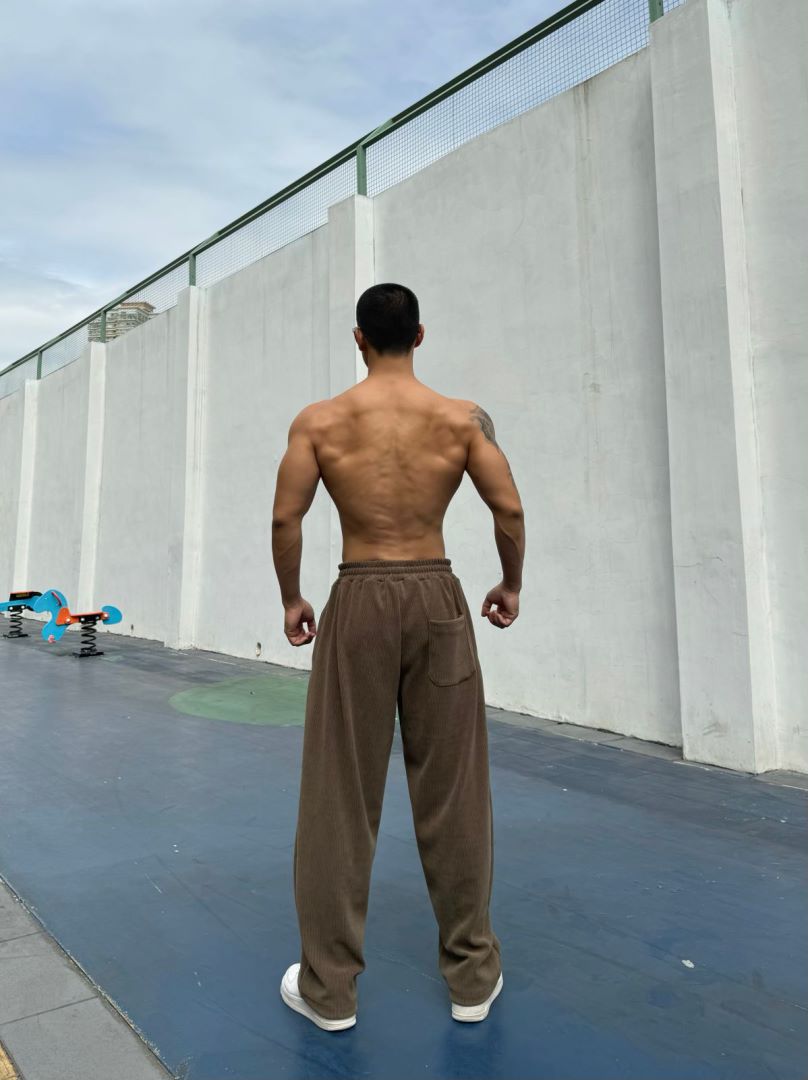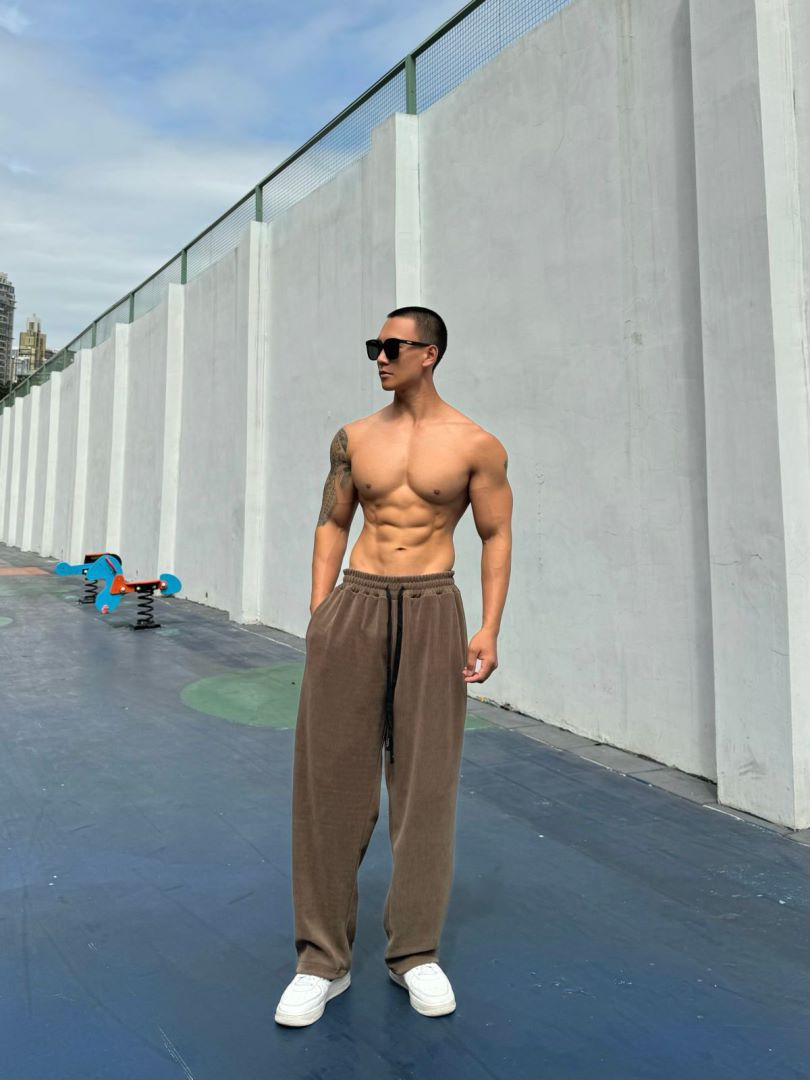 Высокие полосатые брюки --- черные; Высокие полосатые брюки --- темно-серые; Высокие полосатые брюки --- оливково-зеленые