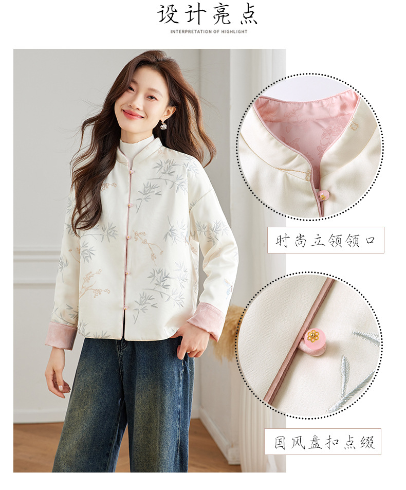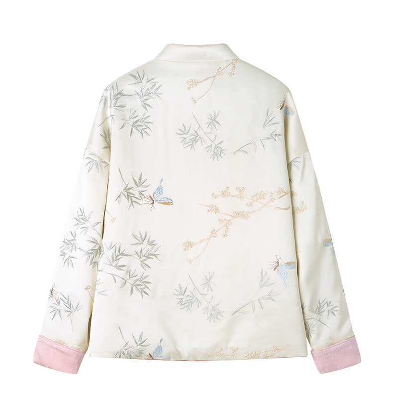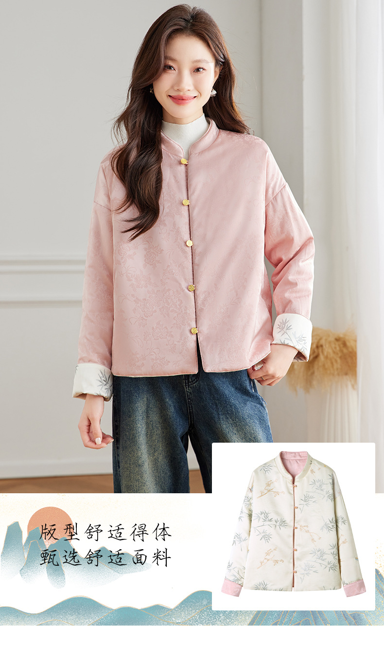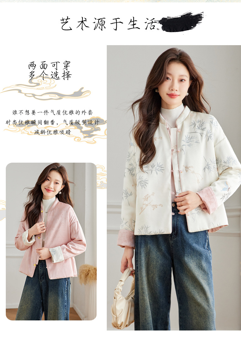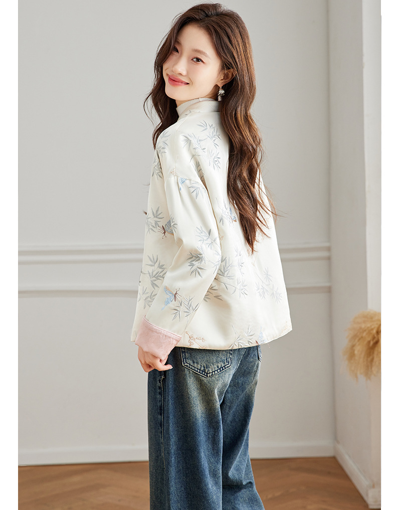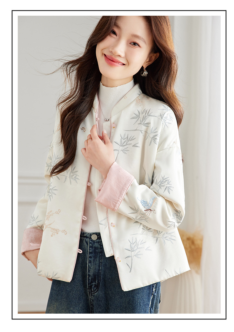 Новая китайская куртка двухсторонняя женская новая весна осень 2024 синий белый бамбук премиум-класса классический атмосферный топ