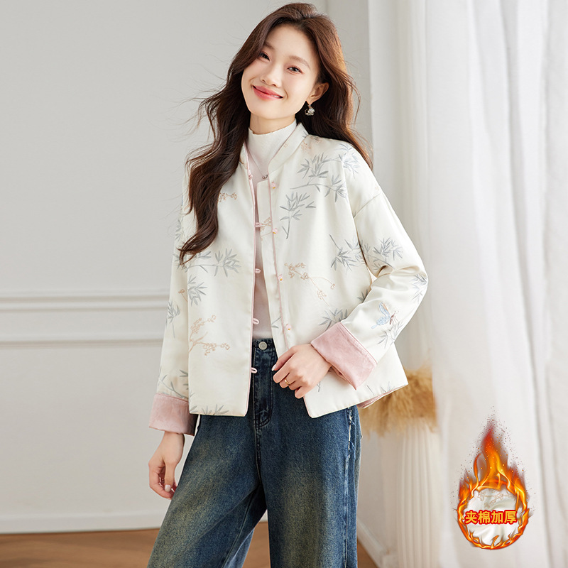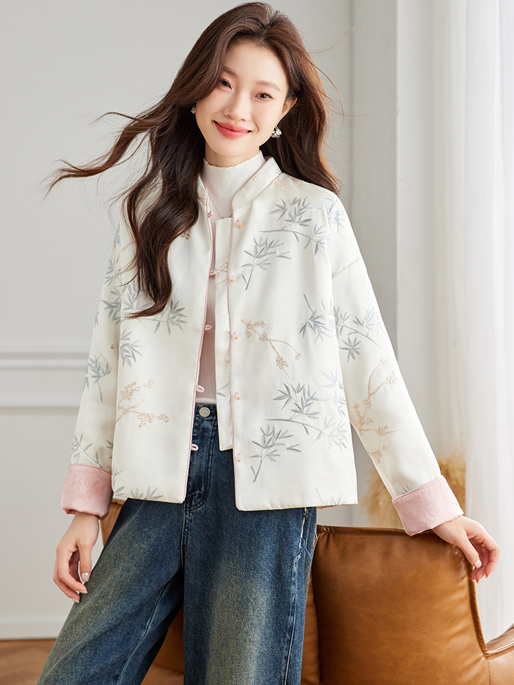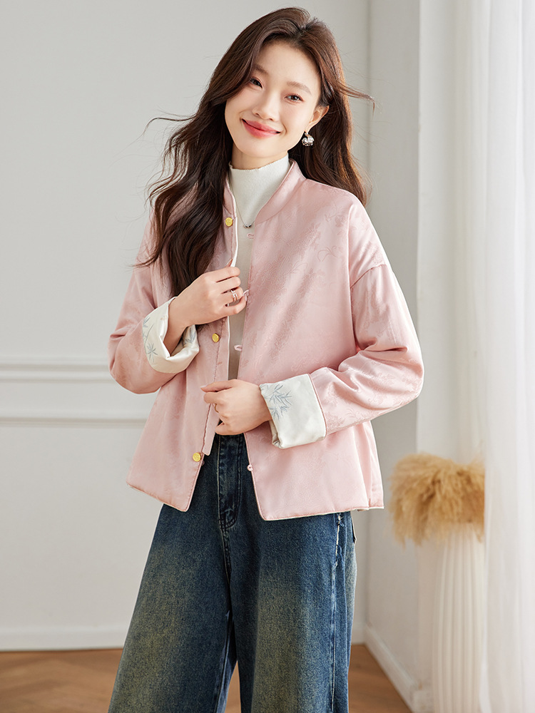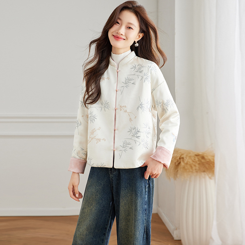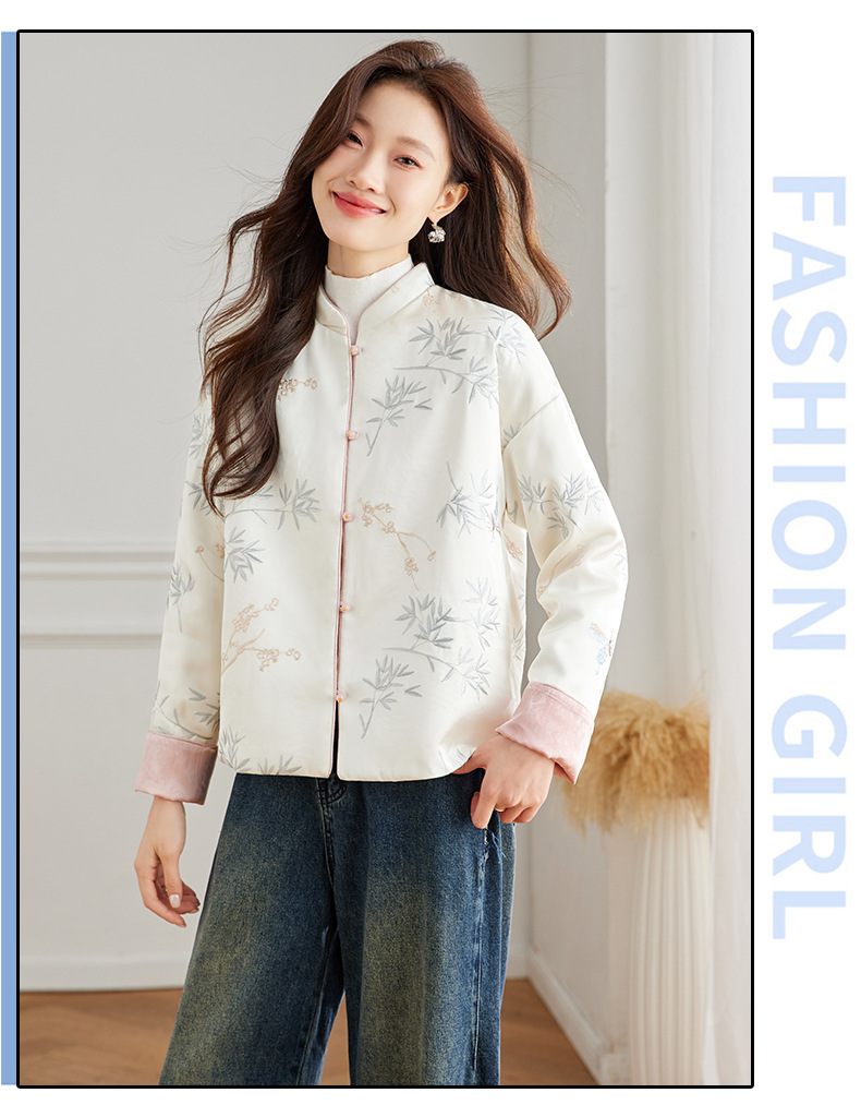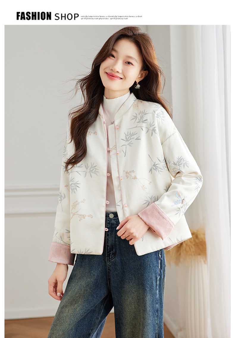 Новая китайская куртка двухсторонняя женская новая весна осень 2024 синий белый бамбук премиум-класса классический атмосферный топ