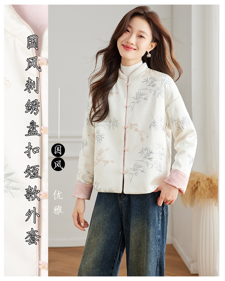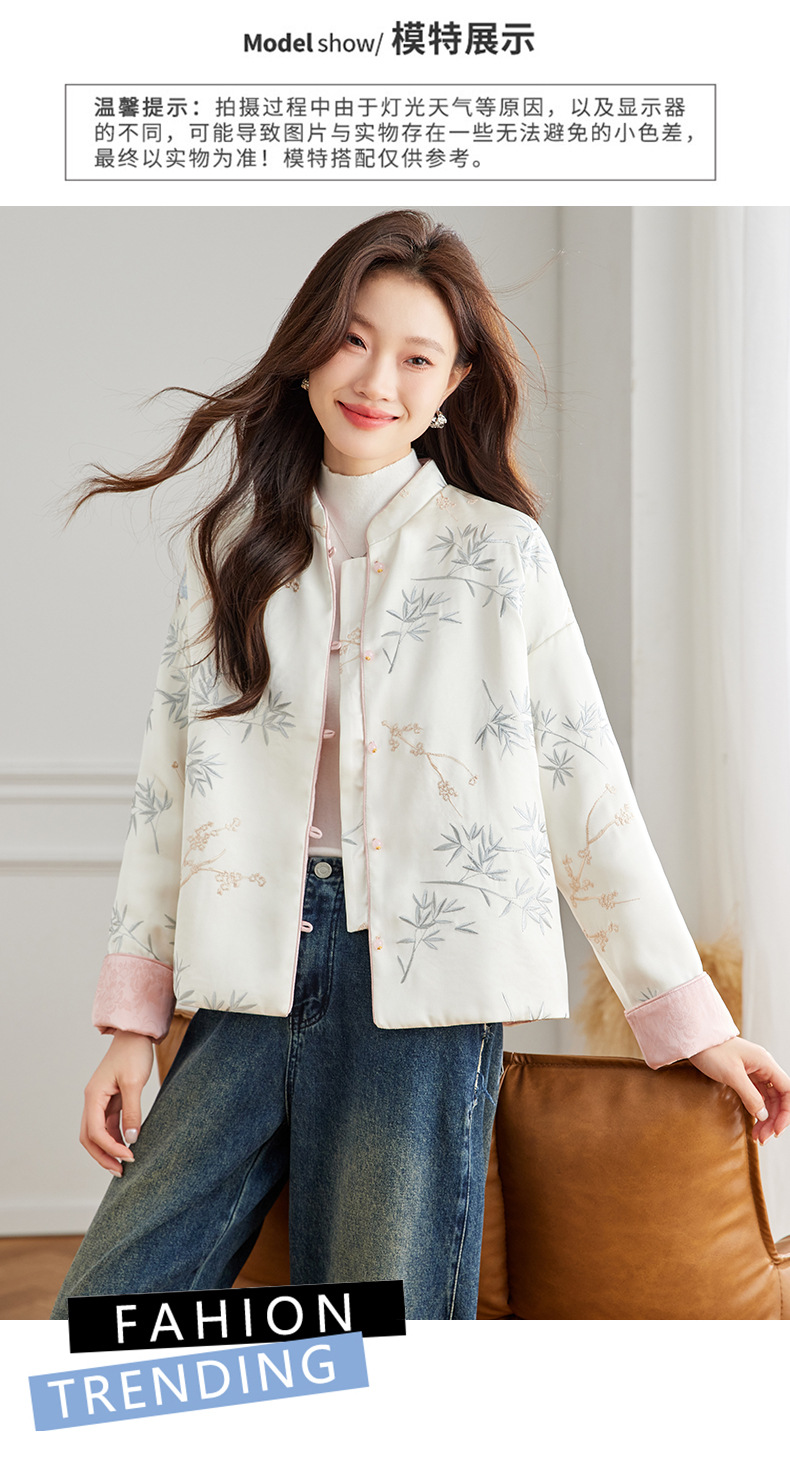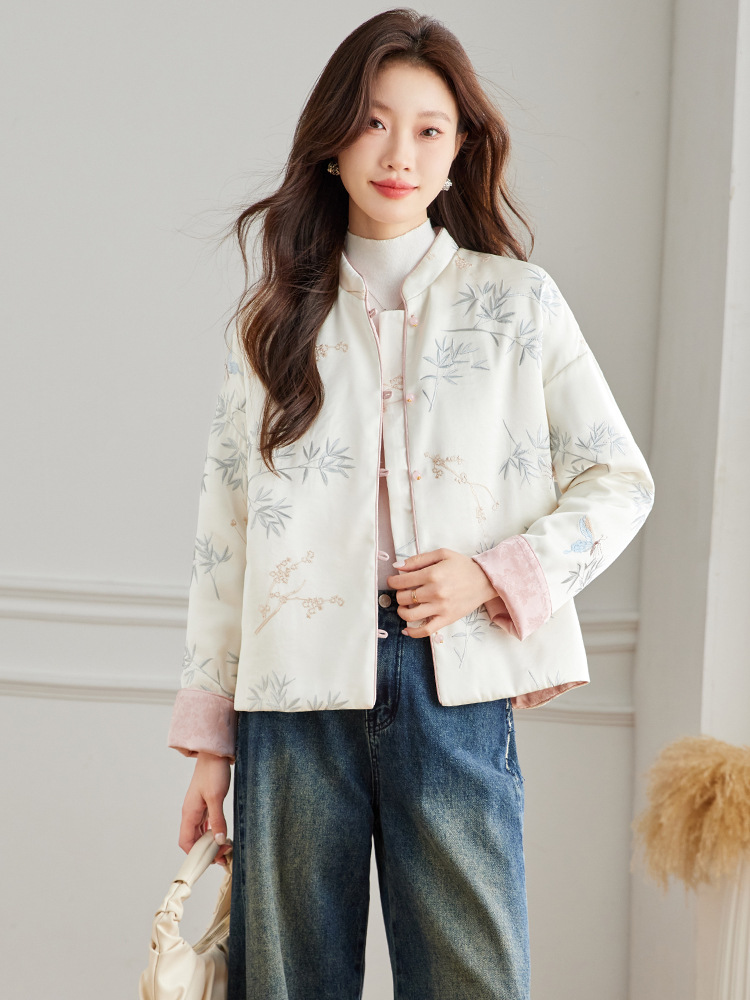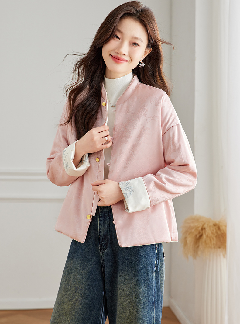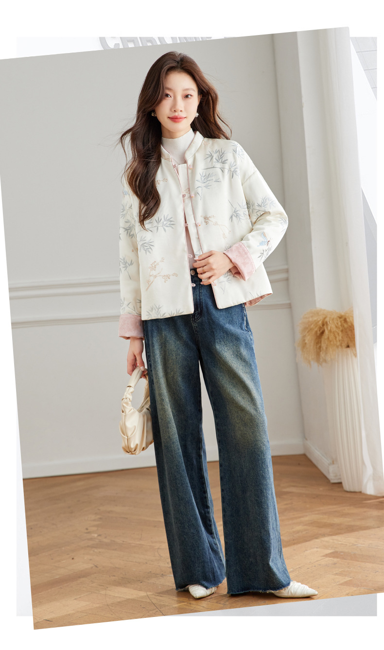 Новая китайская куртка двухсторонняя женская новая весна осень 2024 синий белый бамбук премиум-класса классический атмосферный топ