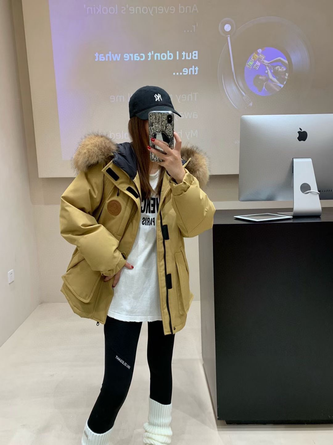 Зимняя новинка 2025: Утепленная куртка-пуховик средней длины с воротником из меха енота, унисекс, для женщин и пар, с капюшоном, для работы