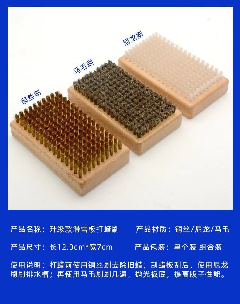 Лыжная щетка (нейлоновая проволочная щетка); Лыжная щетка (щетка из конского волоса); Лыжная щетка (щетка из чистой меди); Щетка для сноуборда (набор из трех предметов)
