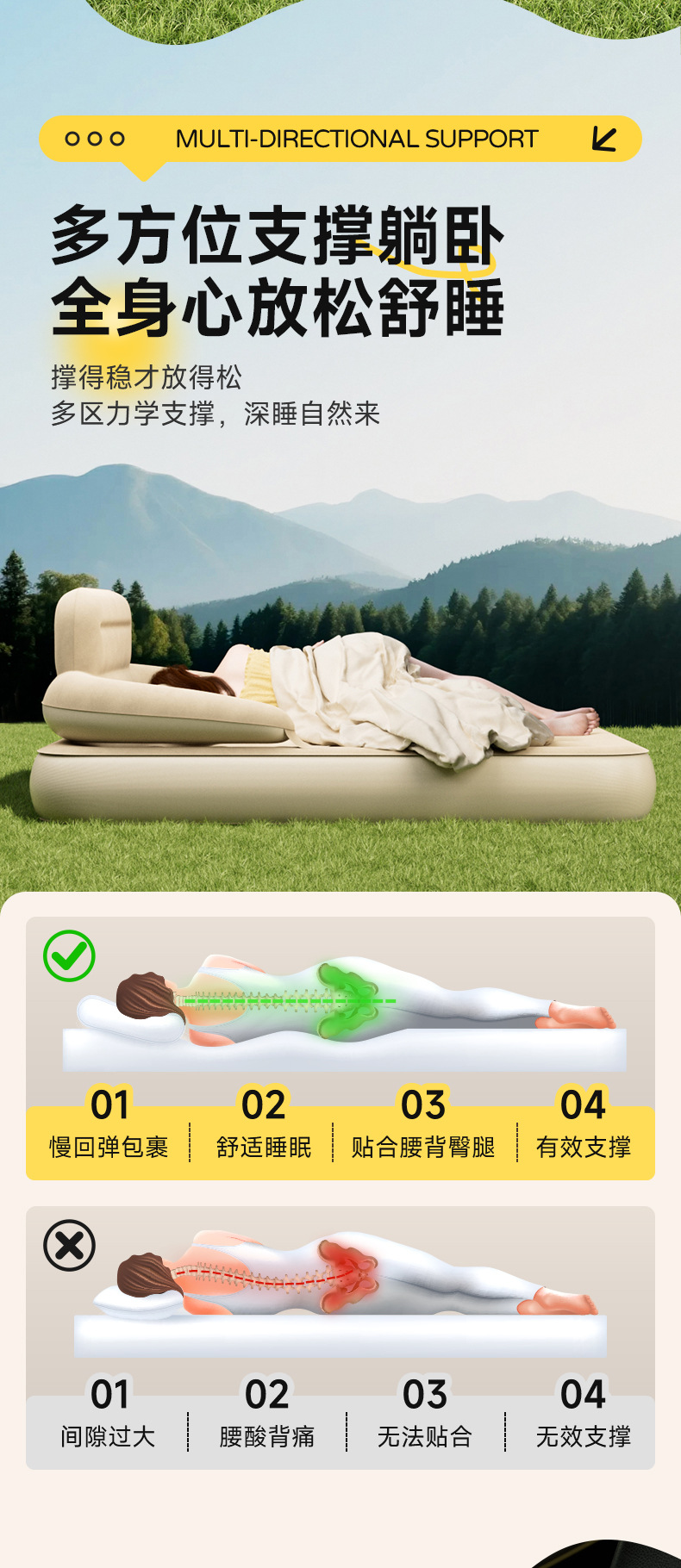 Надувная кровать для кемпинга с подголовником, многофункциональная, для одного и двух человек, для дома и отдыха на природе.