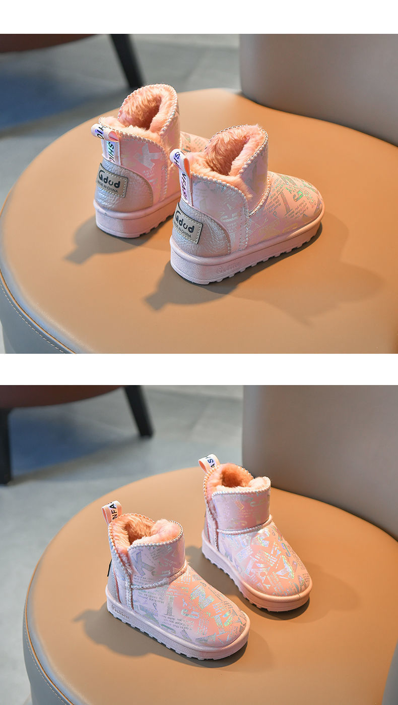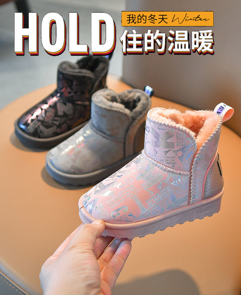 Зимние детские снежные сапоги водонепроницаемые мужские и женские детские модные сапоги детские бархатные теплые хлопчатобумажные туфли детские нескользящие сапоги