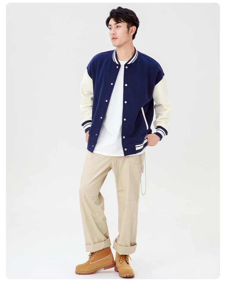Винтажная бейсбольная куртка с цветными блоками и вышитым логотипом, утолщенная рубашка с длинными рукавами в культурном стиле для осени и зимы, подходит для командной униформы.