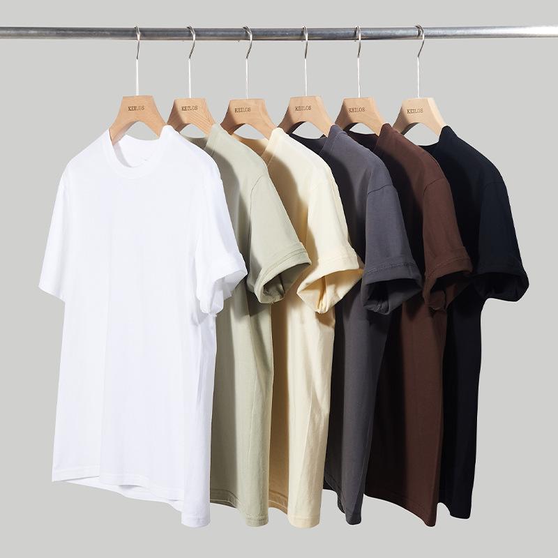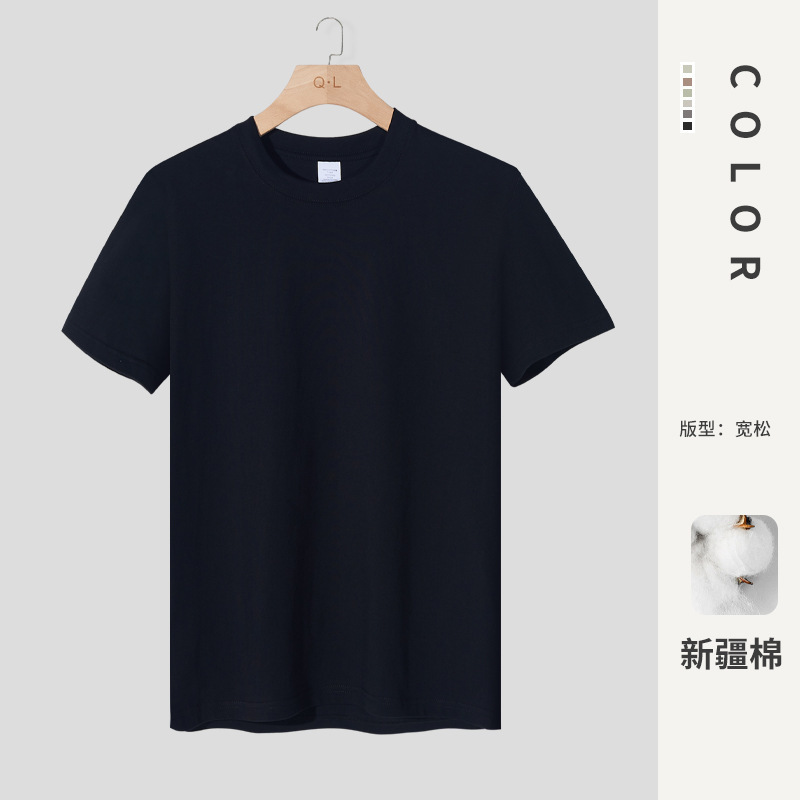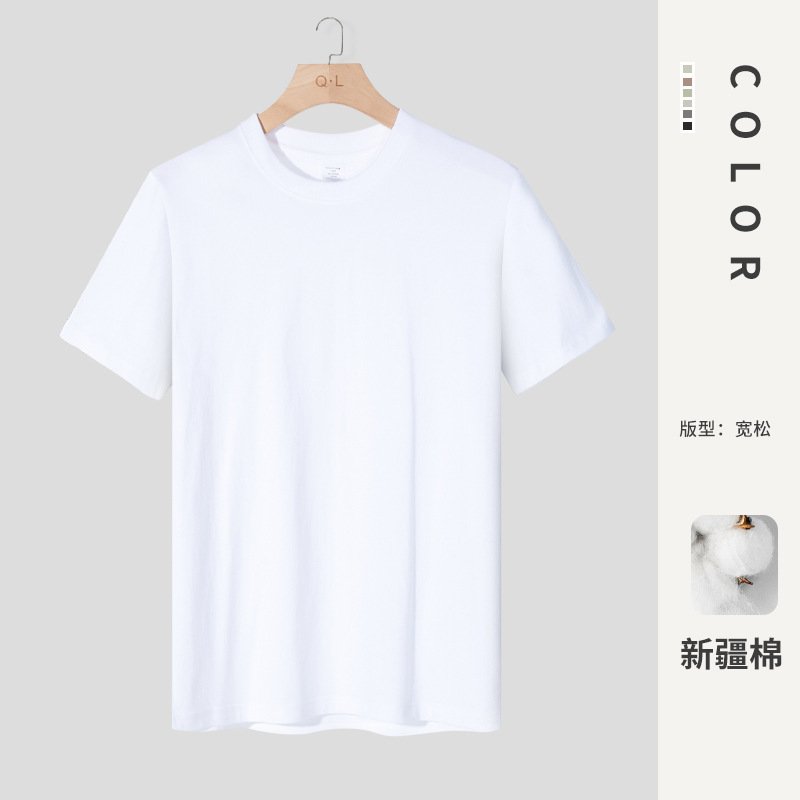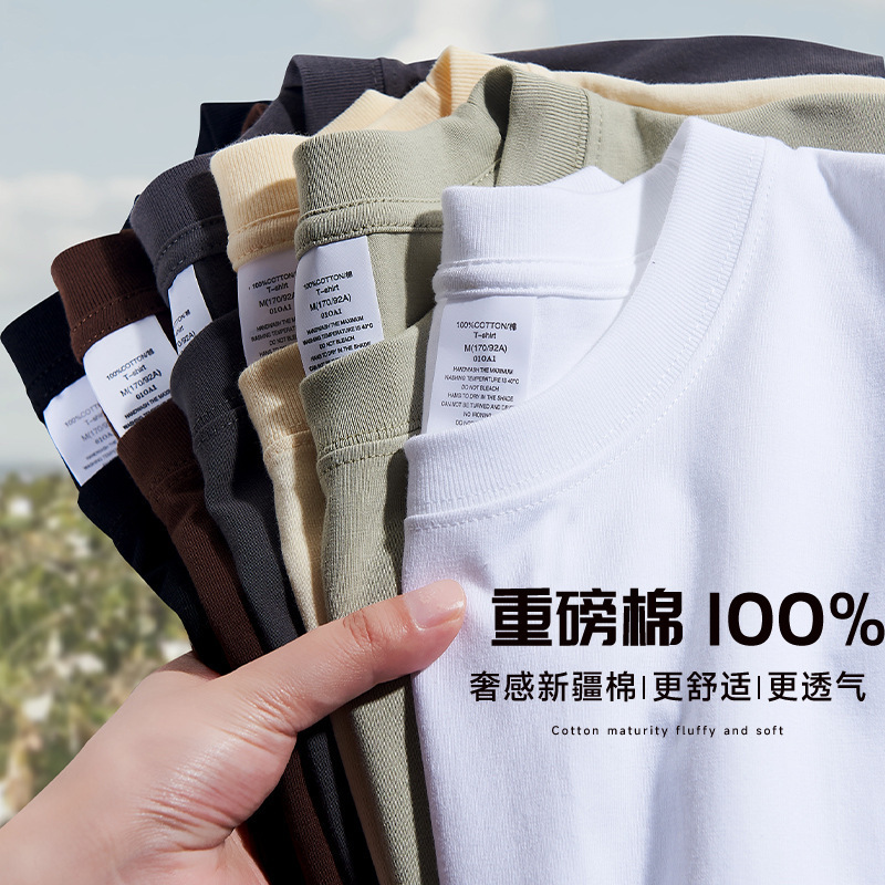 Мужская хлопчатобумажная футболка с коротким рукавом свободная толстая толстая толстая мужская сплошной цвет 100% хлопчатобумажная пара топ