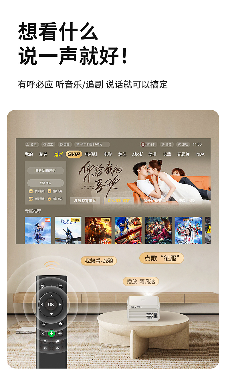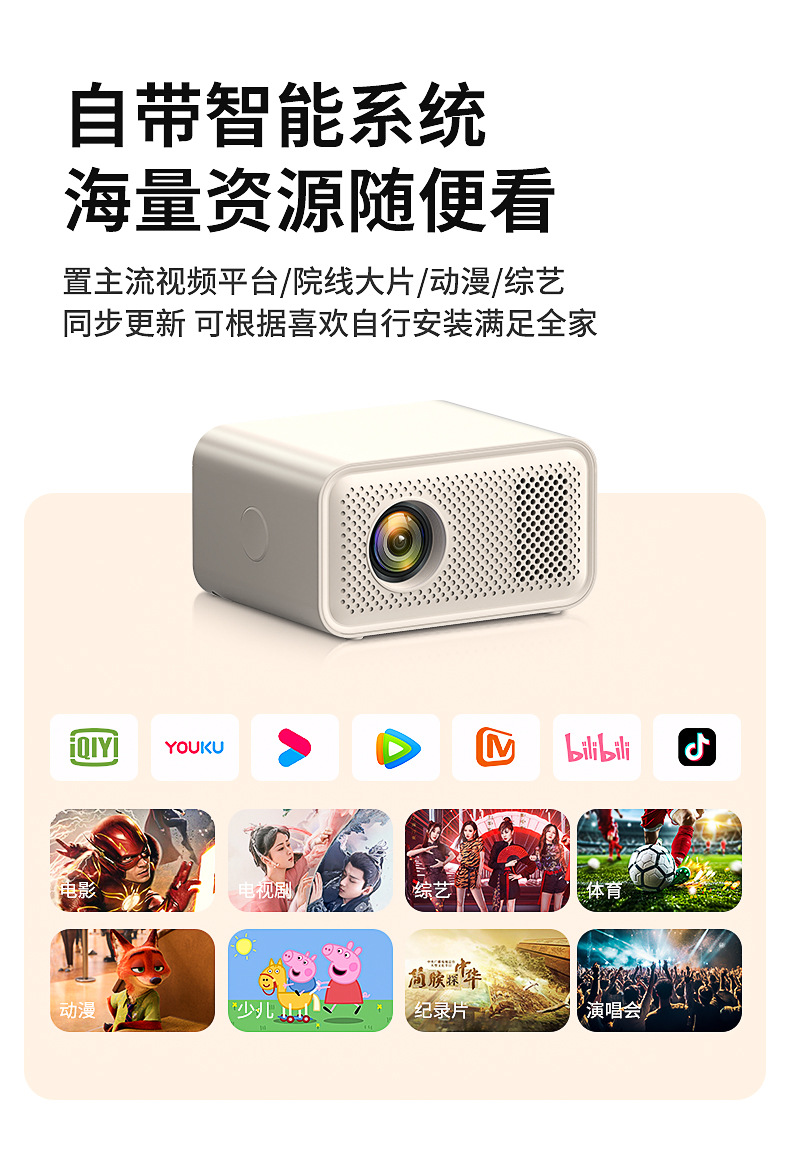 Новая модель проектора 2026 года для домашнего использования в спальне, компактный проектор сверхвысокой четкости для студенческого общежития с поддержкой мобильной проекции экрана 5G.