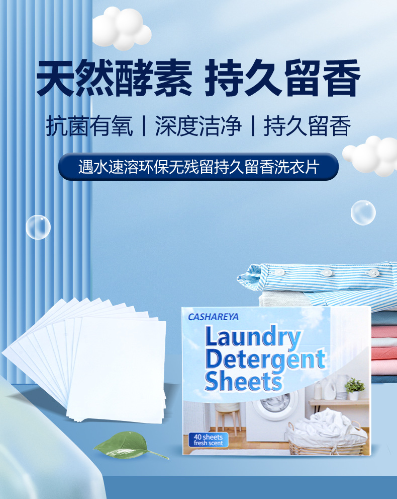跨境爆款浓缩洗衣片去渍泡泡片活性去污便携洗衣泡泡纸工厂直供