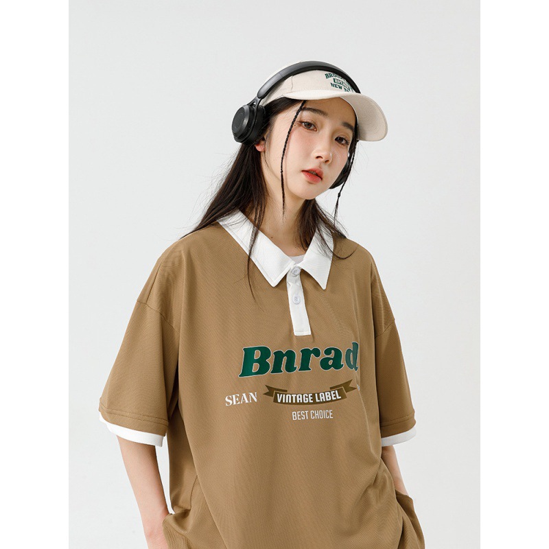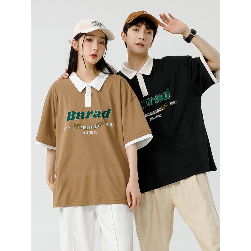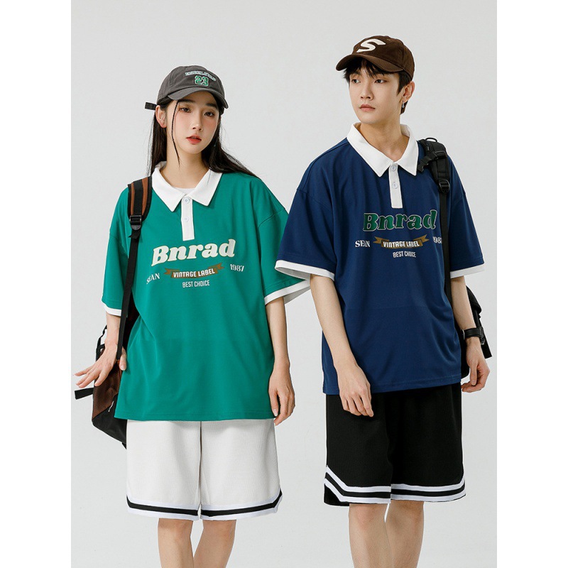 Рубашка поло с буквенно-принтом футболка с короткими рукавами с лацканами Японская пара мужчин и женщин