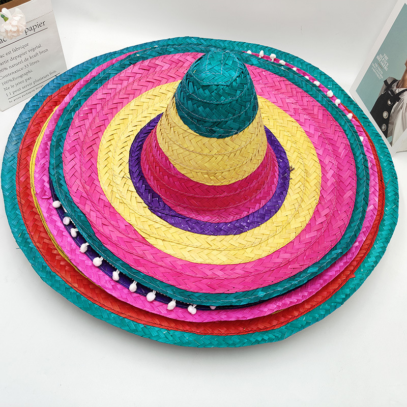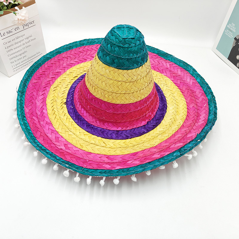 Мексиканская соломенная шляпа бамбуковая шляпа с помпонами