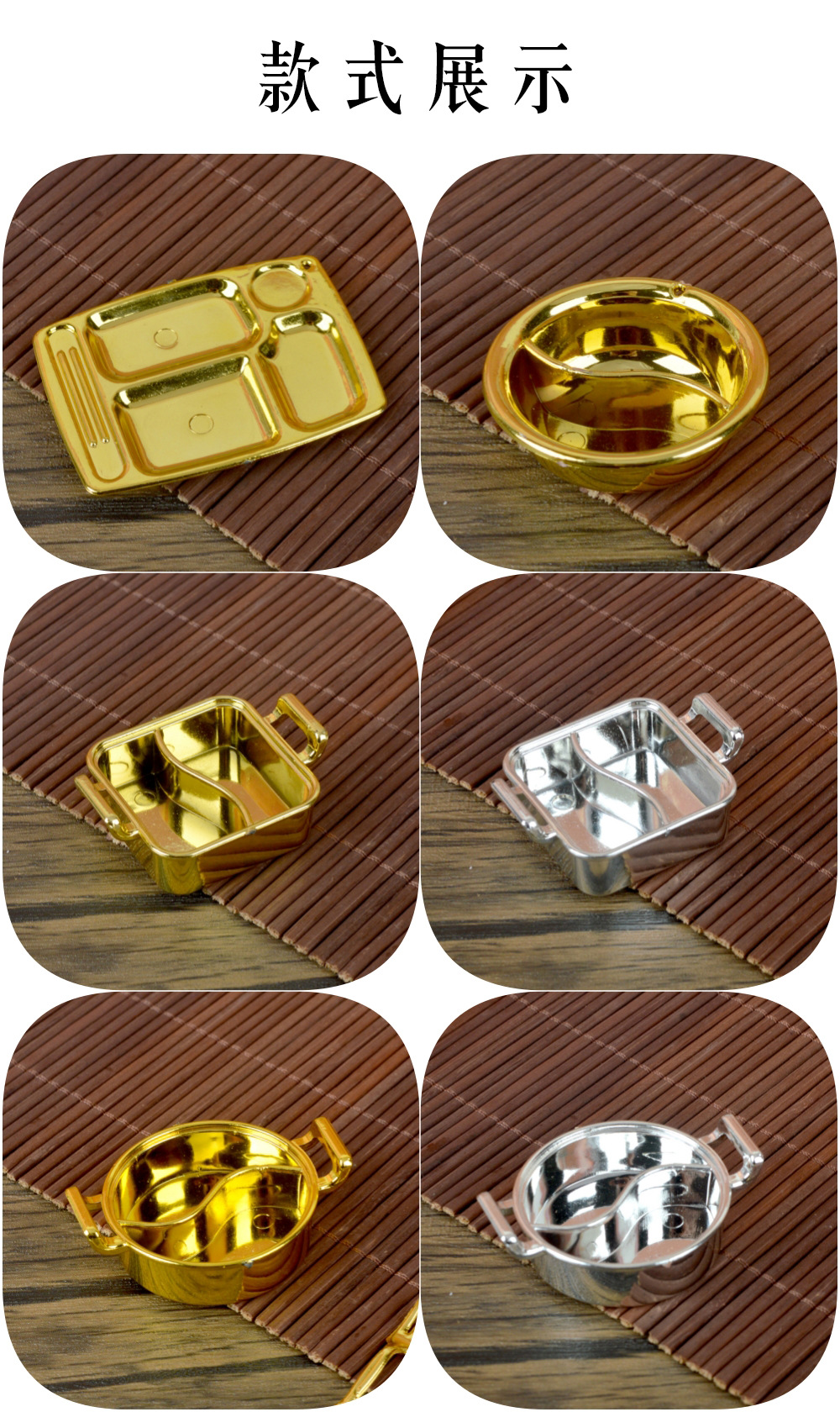 Квадратный горшок с ручкой (золотая модель); Горшок круглый с ручкой (золотая модель); Круглая горячая кастрюля (золотая модель); Обеденная тарелка (золотая модель); Квадратный горшок с ручкой (серебряная модель); Горшок круглый с ручкой (серебряная модель); Горшок круглый (серебряная модель); Обеденная тарелка (серебряная модель)