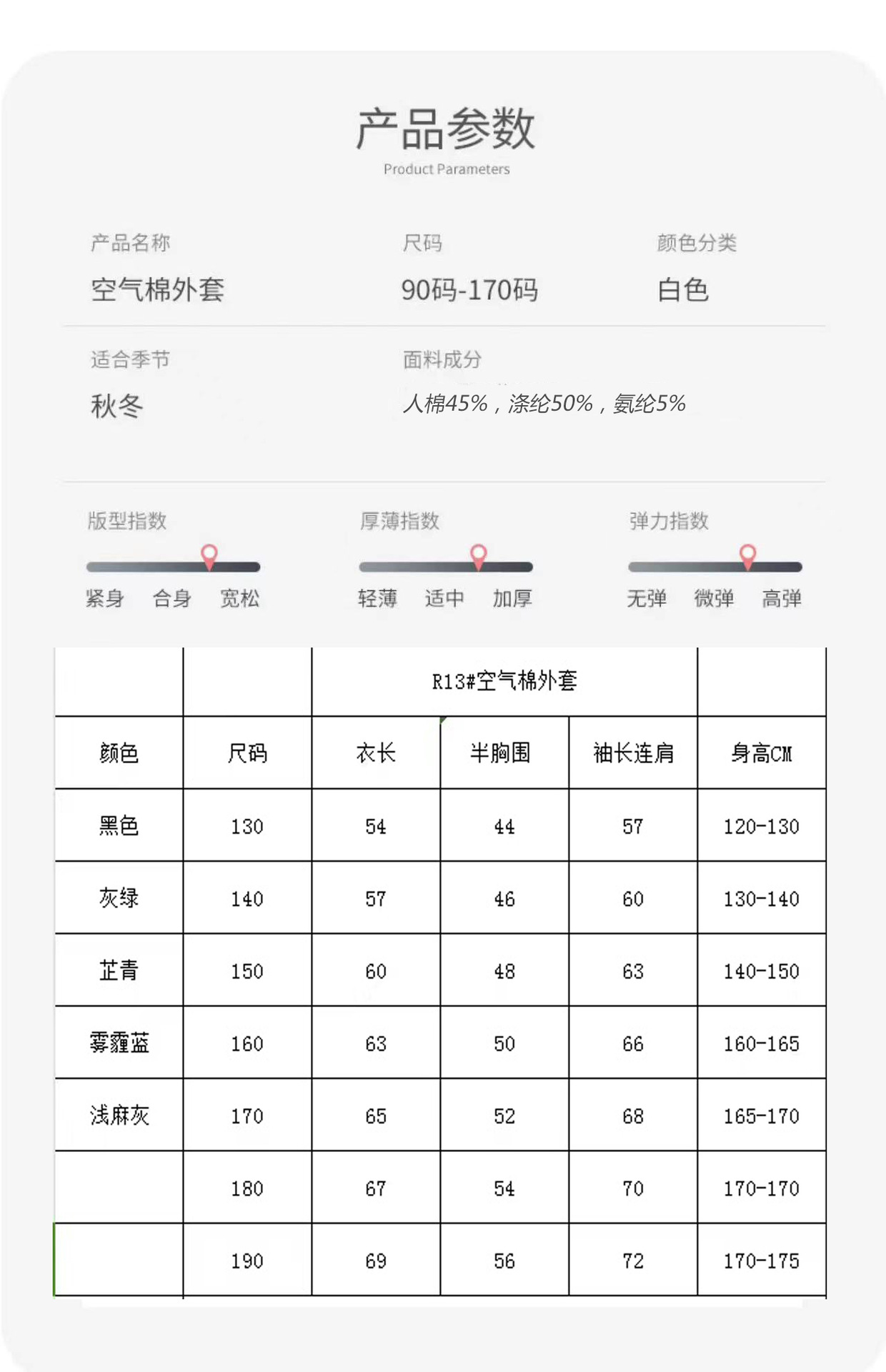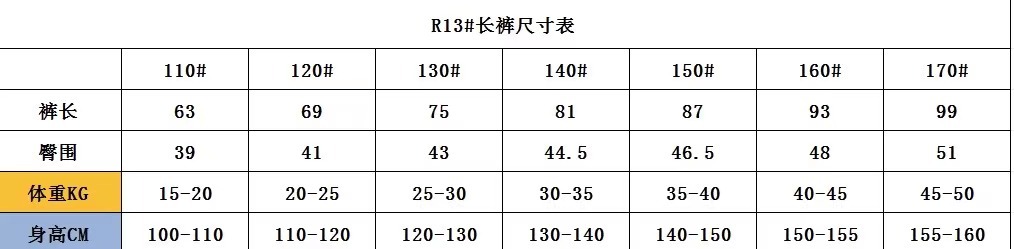 130cm; 140cm; 150cm; 160cm; 170cm; 180cm; 190cm