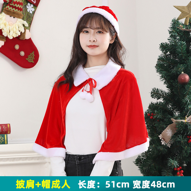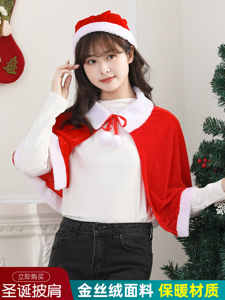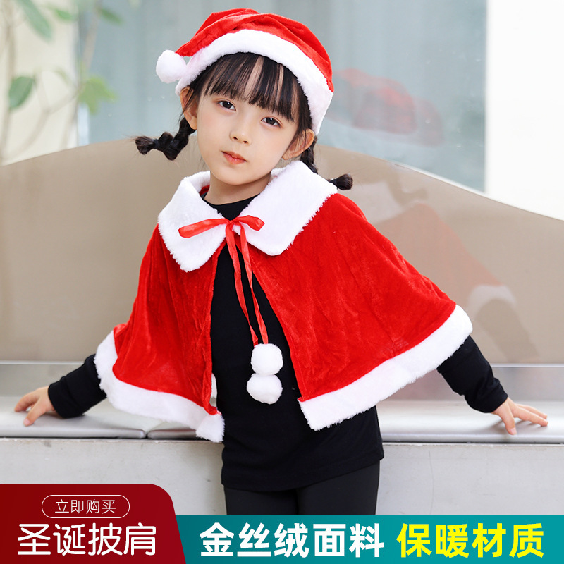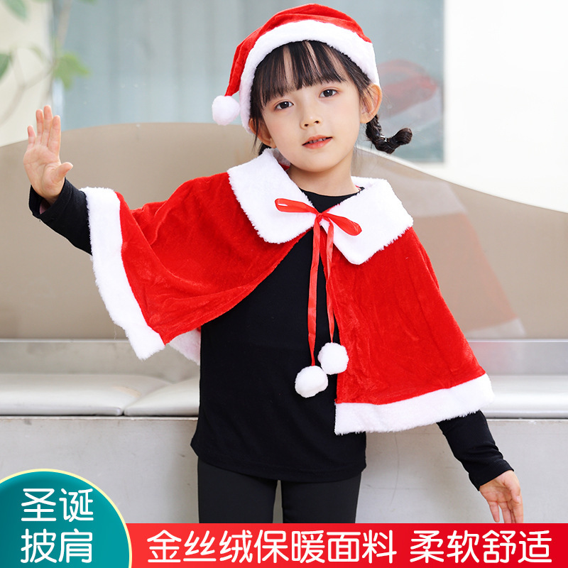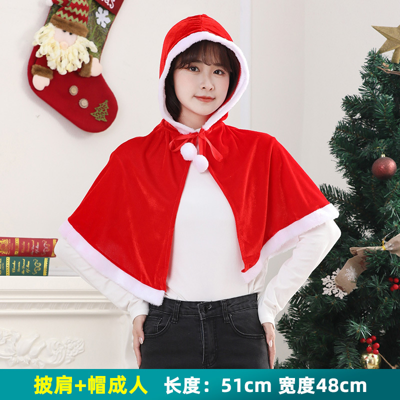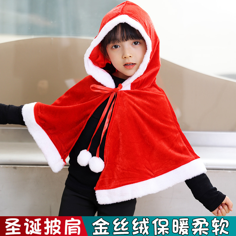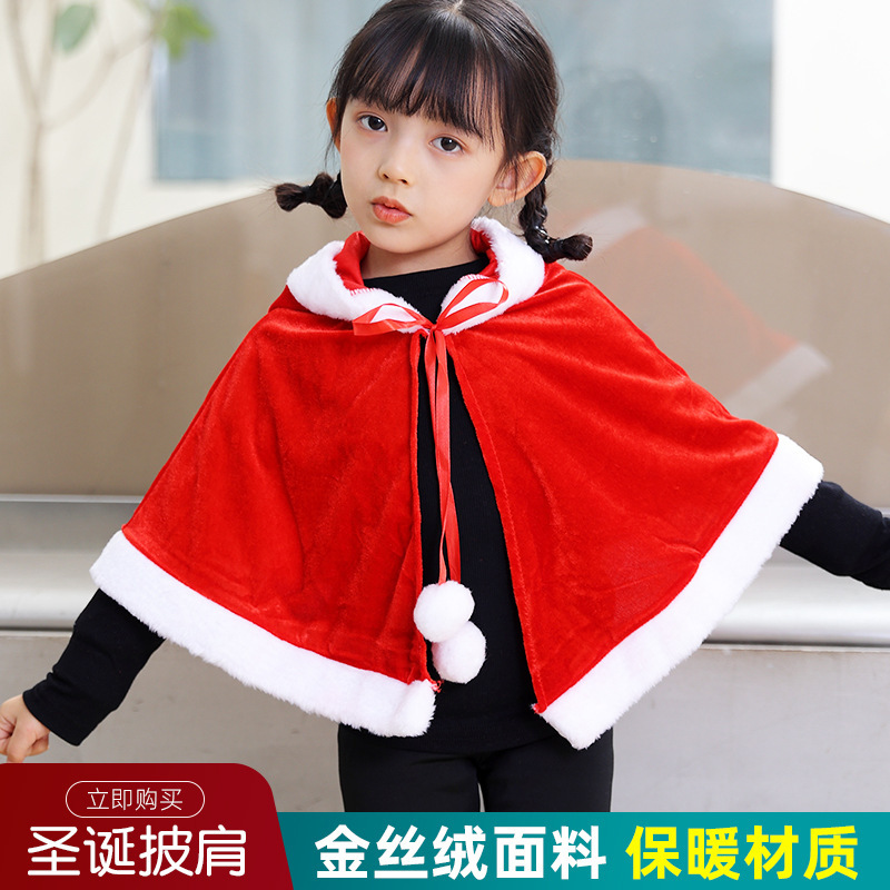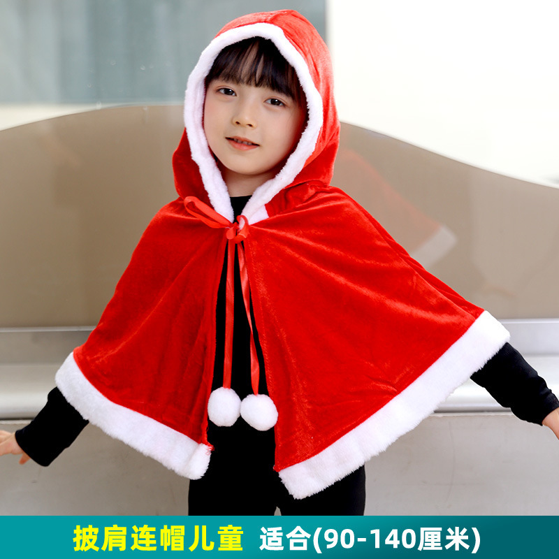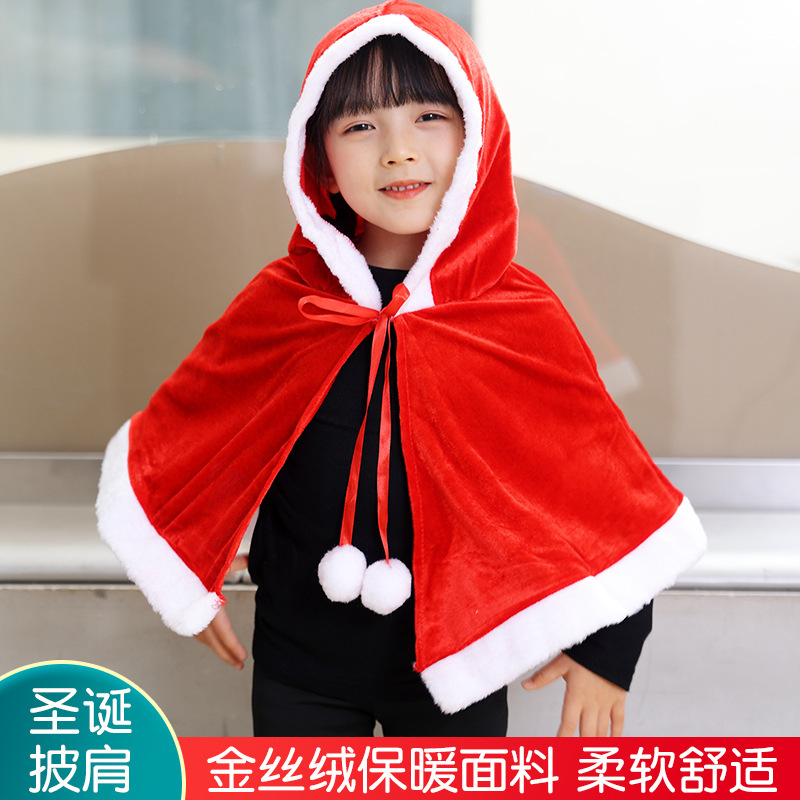 跨境圣诞节衣服成人儿童女连帽披风斗篷圣诞金丝绒派对演出披肩服