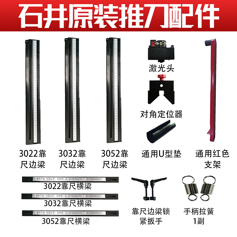 1 пара универсальных быстродействующих винтов; 2 пары универсальных быстрозажимных винтов; 1 пара оригинальных быстродействующих винтов Shijing; 1 оригинальная быстропресс-гайка; 2 оригинальных каменных гайки быстрого давления; 1 пара оригинальных стопорных ключей 3062S.; Нож-толкатель серии Shijing 3062S/37/13, квадратные металлические гайки быстрого прессования, 2 шт.; 2 пружины натяжения ручки серии 30.; 6 пружин натяжения ручки серии 30.; 2 U-образные подушечки серии 30.; 6 U-образных подушечек серии 30.; 2 U-образных подушечки серии 37.; 6 U-образных подушечек серии 37.; Режущий круг стандартного класса 10 000 м (5 мм); Режущее колесо профессионального класса 300 000 метров (5 мм); Режущее колесо промышленного класса 60 000 метров (5 мм); Оригинальное ножевое колесо 10 000 метров (5 мм); Оригинальный режущий круг Shijing 300 000 метров (5 мм); Оригинальный режущий круг Shijing 50 000 метров (5 мм); Режущее колесо стандартного класса Shijing 10 000 метров (6 мм), используемое в качестве некаменного ножа для скважин.; Профессиональное ножевое колесо Shijing 300 000 метров (6 мм) используется неокаменный нож для скважин; Лазерная головка 3021/31/51; 2 винта-бабочки с ручным нажимным ножом; Скользящий узел Shijing 608 подшипников 2 шт.; 4-х каменных раздвижных подшипников в сборе 608; Скользящий узел Shijing 608 подшипников 8 шт.; Оригинальный подшипниковый винт Shijing + гайка; Оригинальные подшипники Shijing 4 608 + комплект винтов + гаек; Диагональный локатор; Универсальный красный кронштейн; Shijing 0.8m линейка-нож со шкалой 44 см, 1 шт.; Shijing 0.8m толкающий нож-линейка балка – общая длина 52 см; Shijing 1m линейка-нож со шкалой 55 см 1 шт.; Shijing 1m толкающий нож-линейка балка – общая длина 62 см; Shijing 1.2m линейка-нож со шкалой 64 см; Shijing 1.2m толкающий нож-линейка балка – общая длина 72 см; Shijing 1.6m линейка из алюминиевого сплава с толкающим ножом со шкалой (83 см); Shijing 1.6m толкающий нож-линейка балка – общая длина 92 см; Shijing 1.8m толкающий нож из алюминиевого сплава, кромка линейки со шкалой (93 см); Shijing 1.8m балка линейки толкающего ножа - общая длина 102 см; 1 Нажимная пластина для толкающего ножа серии 3022; Shijing 3721/1322 Боковая линейка, скользящая часть опорной пластины 1; 1 крепежная деталь линейки Shijing 3721; Ручной толкающий нож Shijing с ручкой серии 30 (без держателя ножа); Нажимной нож с зеленым светом, аккумуляторный ящик для лазерного позиционирования в сборе; 1 лазерный локатор с зеленым светом; Набор толкающих ножей Shijing 301, металлические ступеньки, 2 шт.; Ручной держатель ножа Shijing (без ножевого колеса); Руководство по доставке 0.8m набор линейки для толкающего ножа (40 см со шкалой); Набор линейных ножей Shijing в сборе (55 см со шкалой)