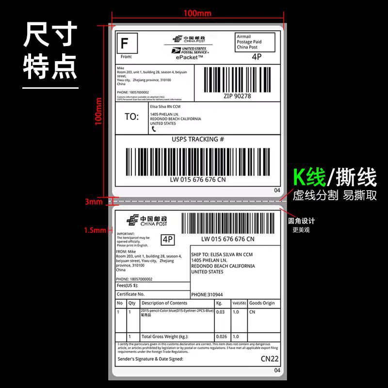 Складная тройная термочувствительная бумага 100x100x150E Почтовая бумага с этикеткой