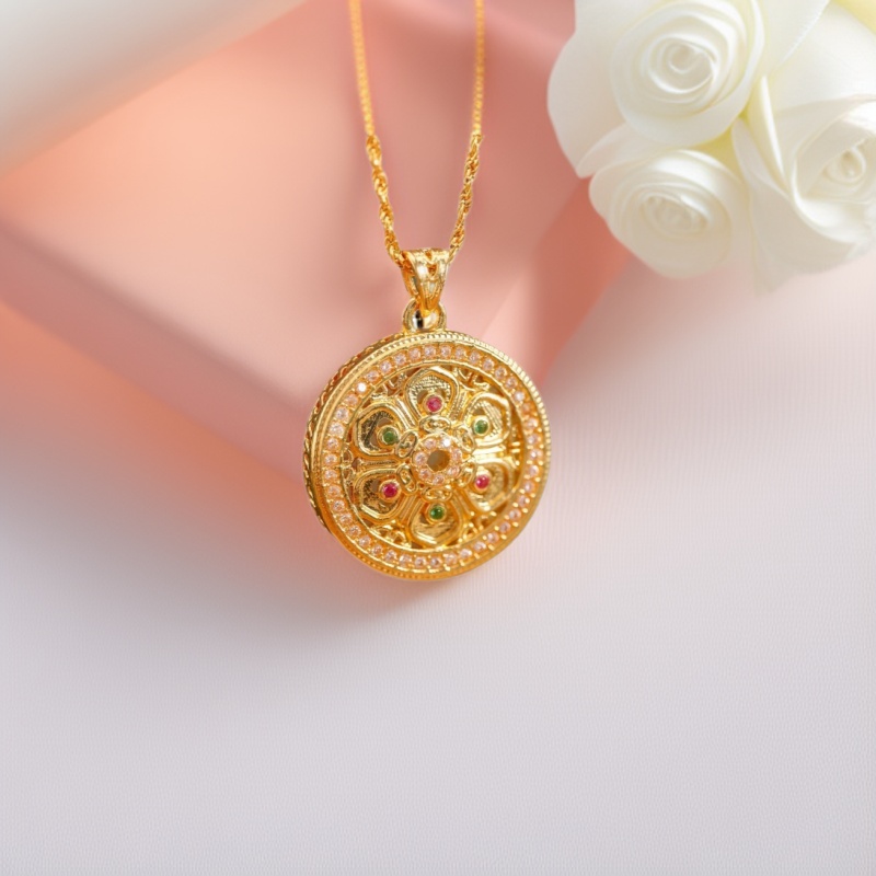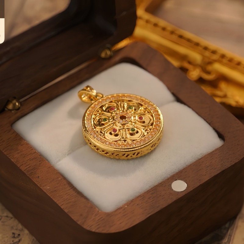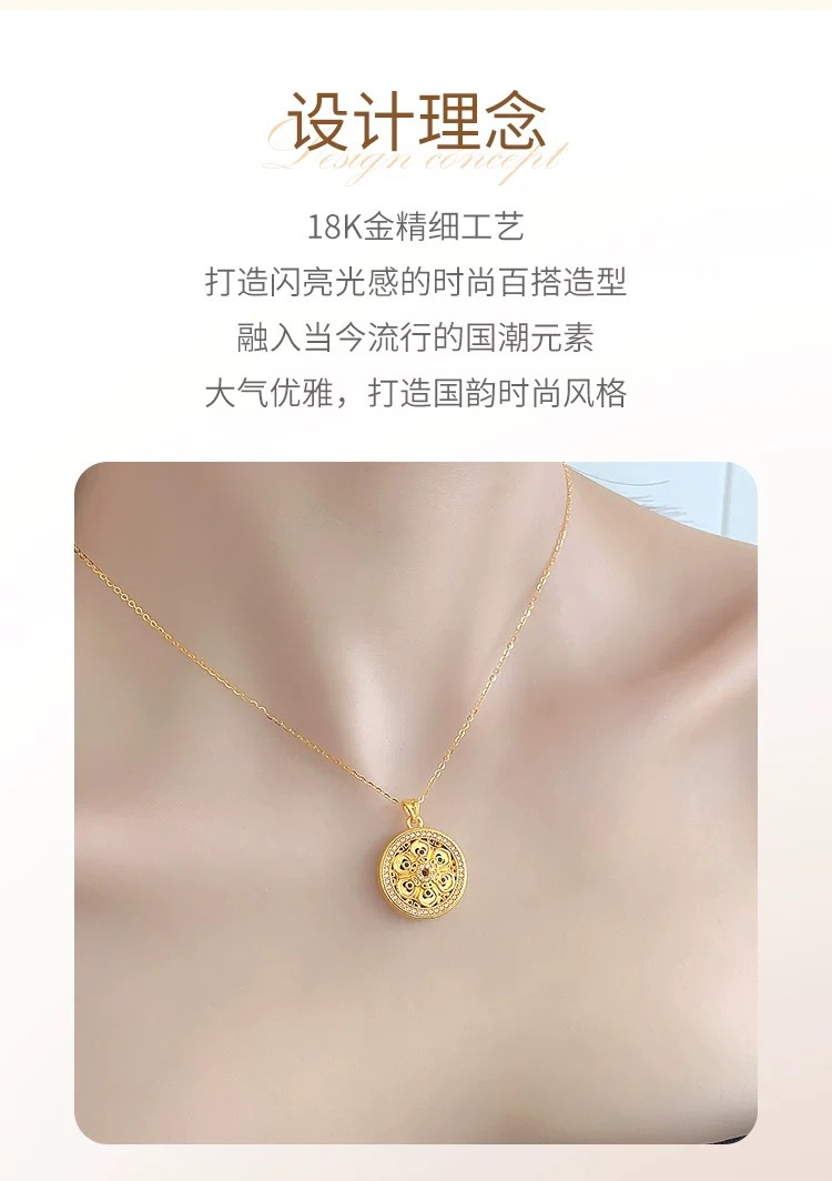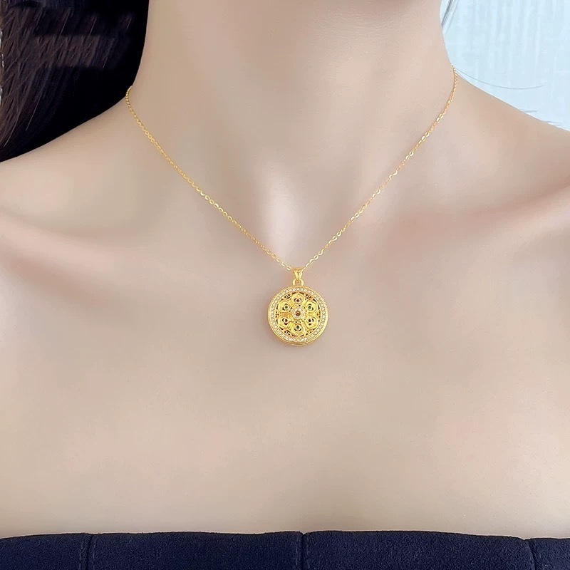 Шестисимвольная мантра, 18-каратное золото, восьмикамерный компас, цветной драгоценный камень, ожерелье из муассанита AU750, легкие роскошные женские новые ювелирные изделия, оптовая продажа