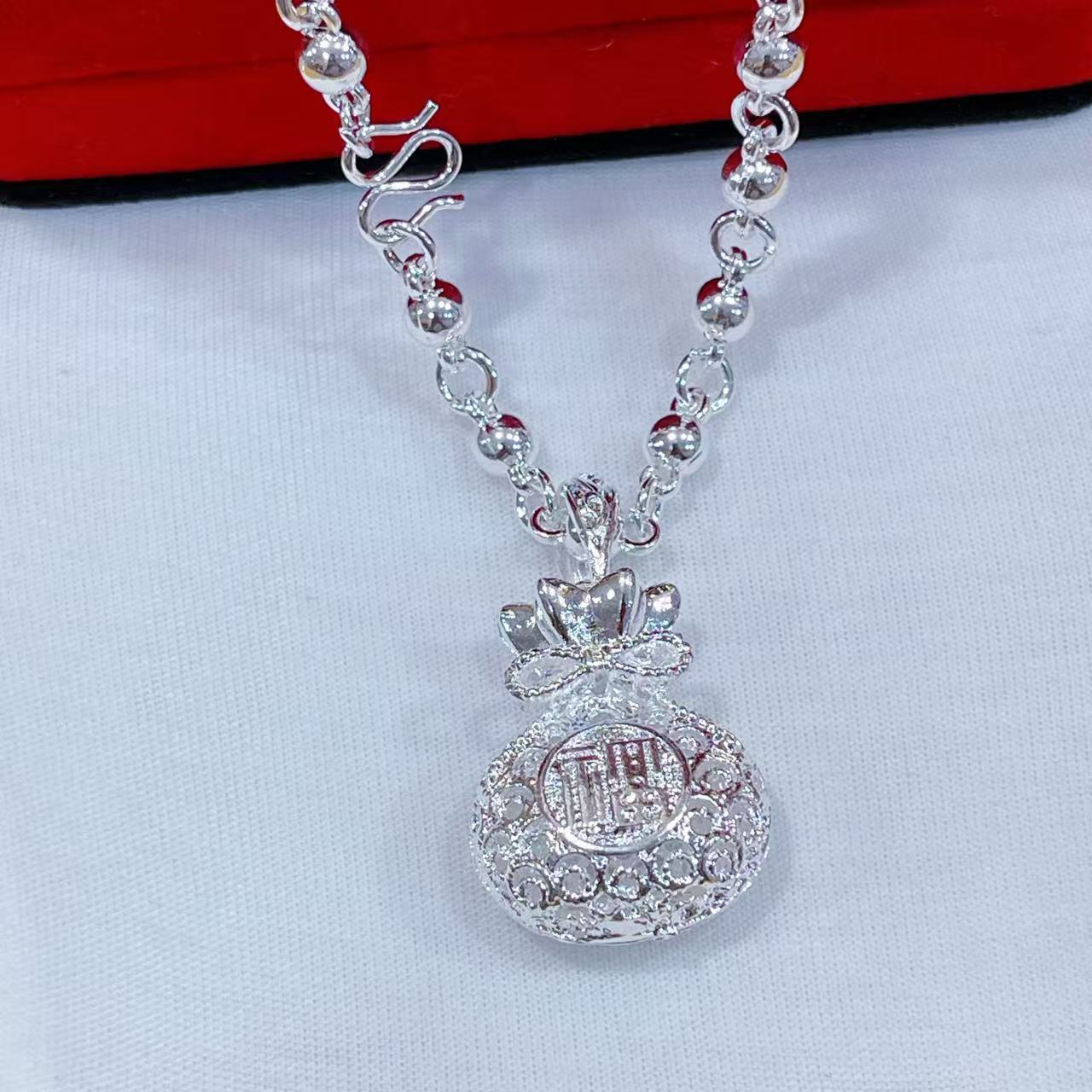 Высокая имитация серебряного обшитого кулона сумка благословения слово безопасное ожерелье для мужчин и женщин модный серебряный кулон завод оптом