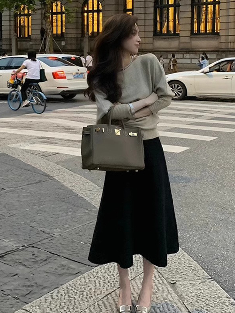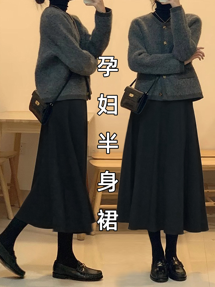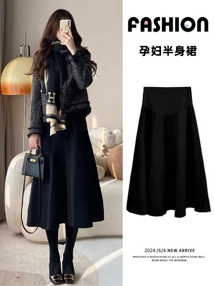 Юбка для беременных, весна-осень, элегантная женственная юбка А-силуэта с высокой талией, стройнящая фигуру, юбка-парасоль средней длины.