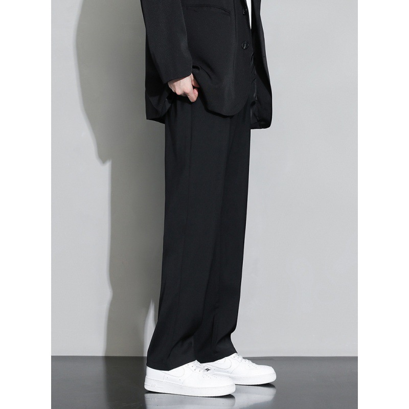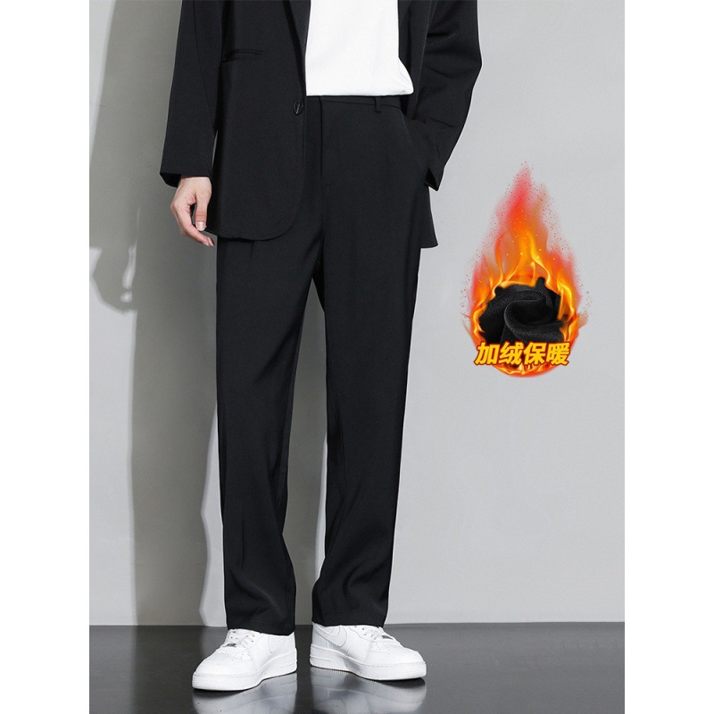 Маленькие брюки Мужские брюки Зимние прямые брюки плюс бархатные повседневные брюки Мужские вертикальные широкие ноги черные костюмы брюки