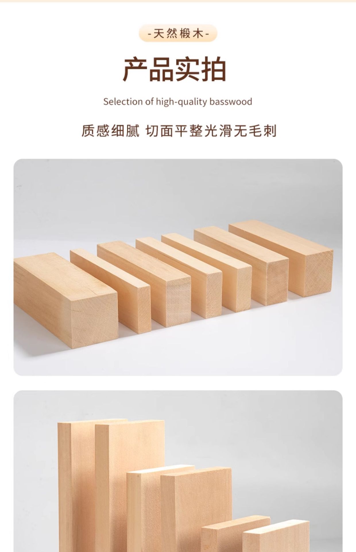 Кросс-бордерная оптовая продажа квадратных полосок из липы, материал для DIY, массивная доска из липы, резьба по дереву, блок из массива липы, модель из массива дерева