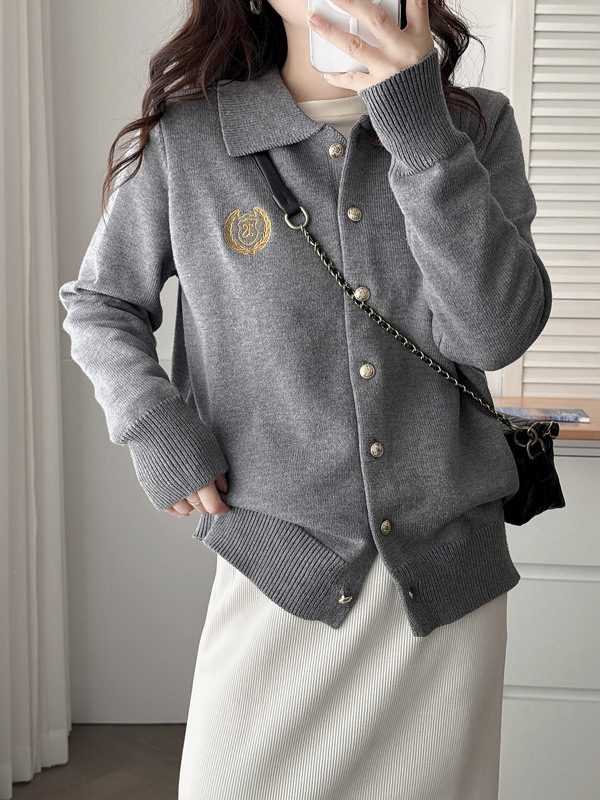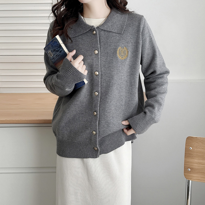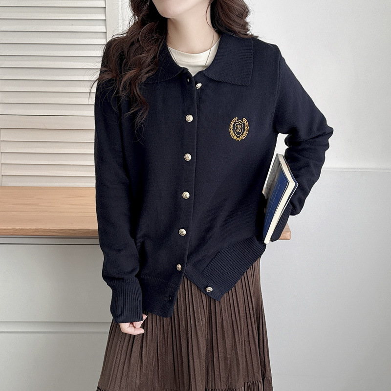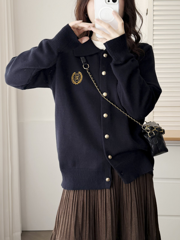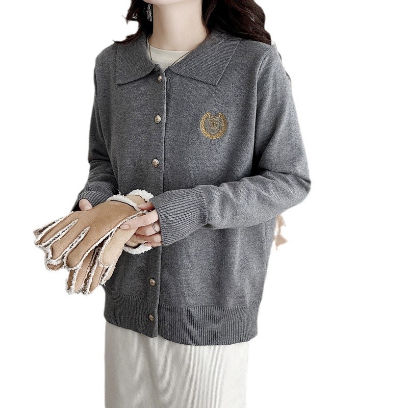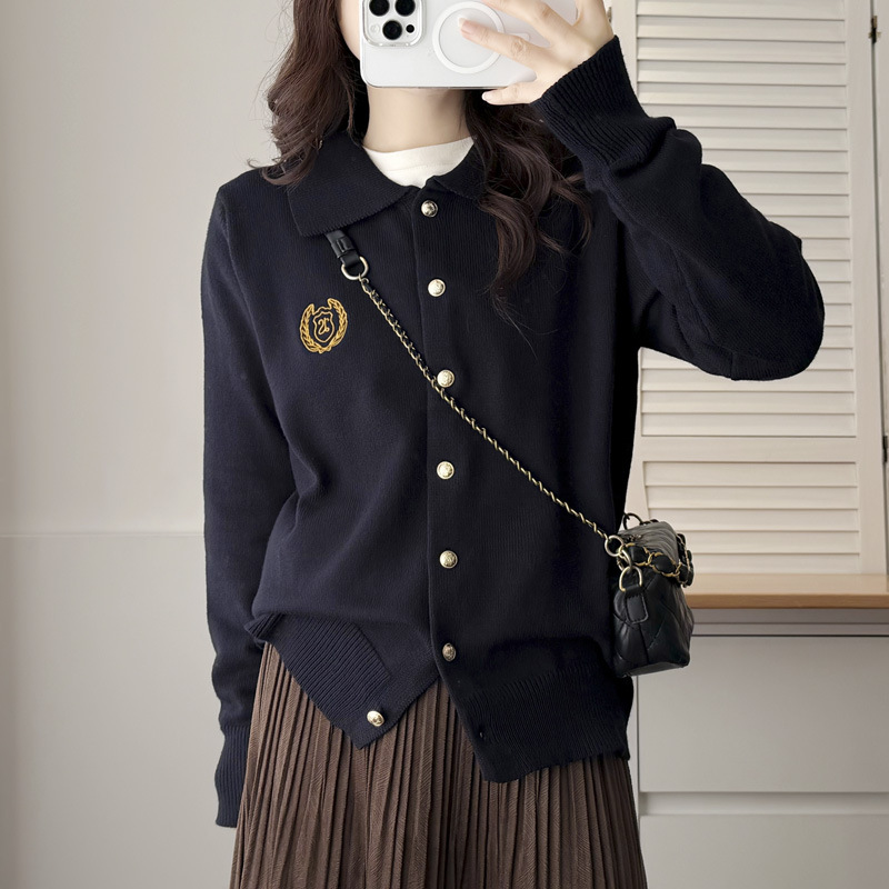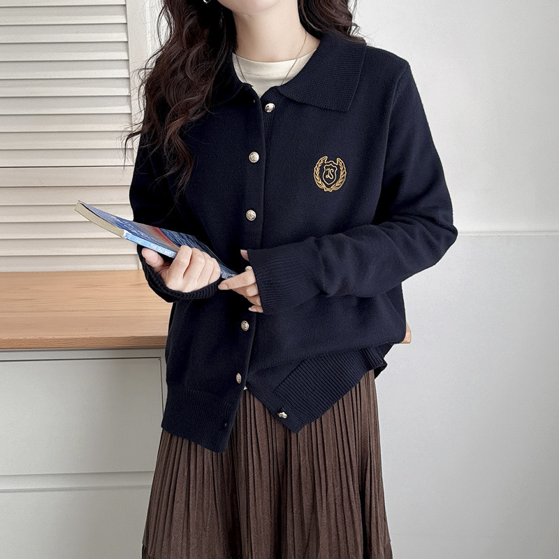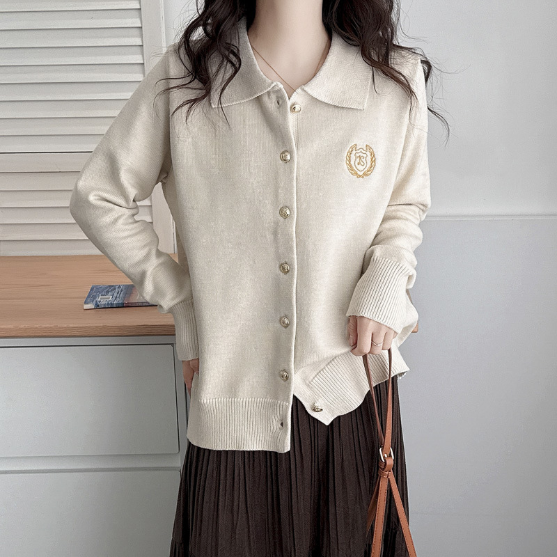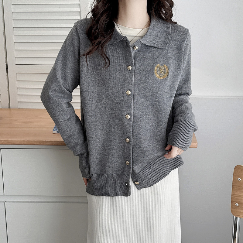 Трикотажный свитер большой размер женский толстый мм кардиган осень-зима 2024 новый 200 кг академическая вышивка с отворотом свитер куртка