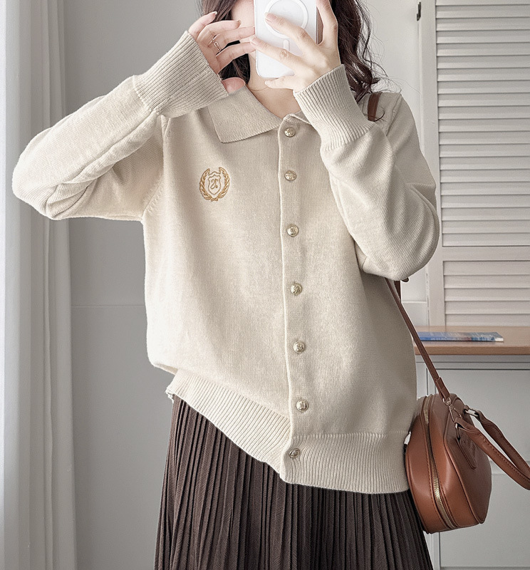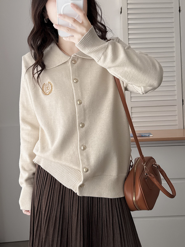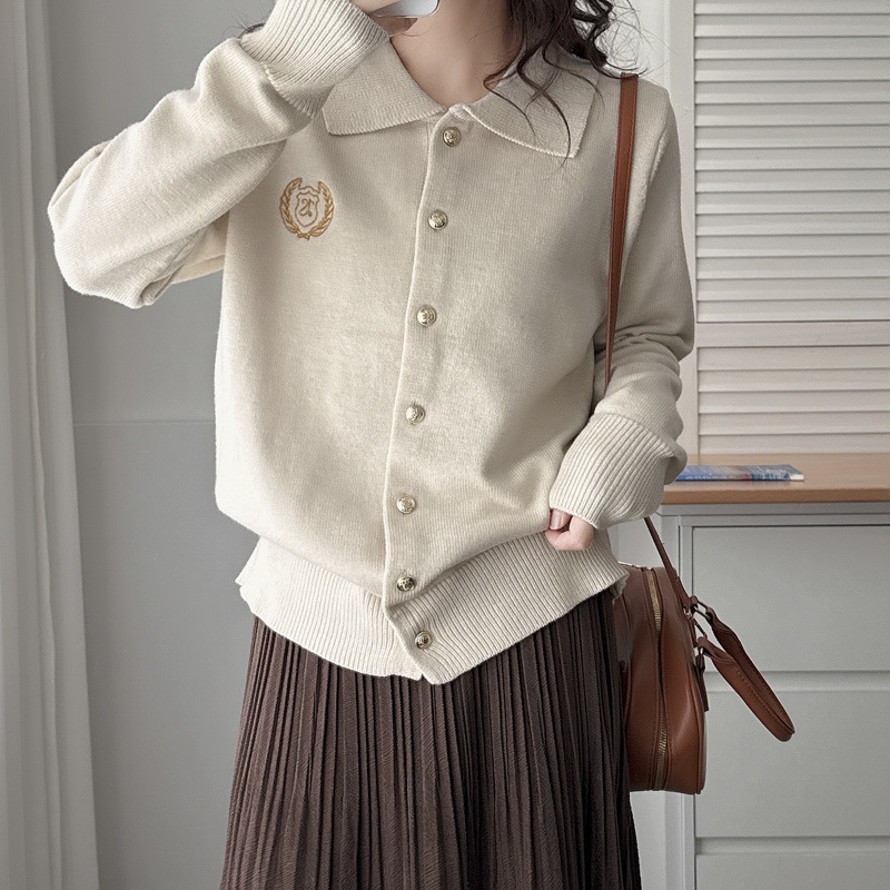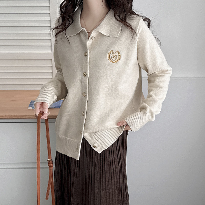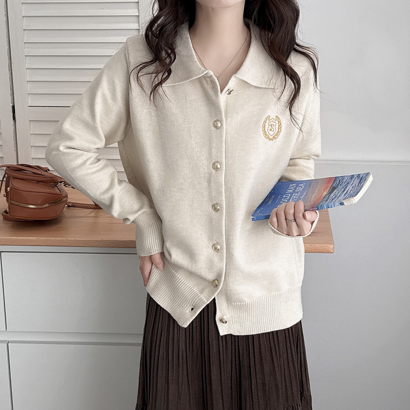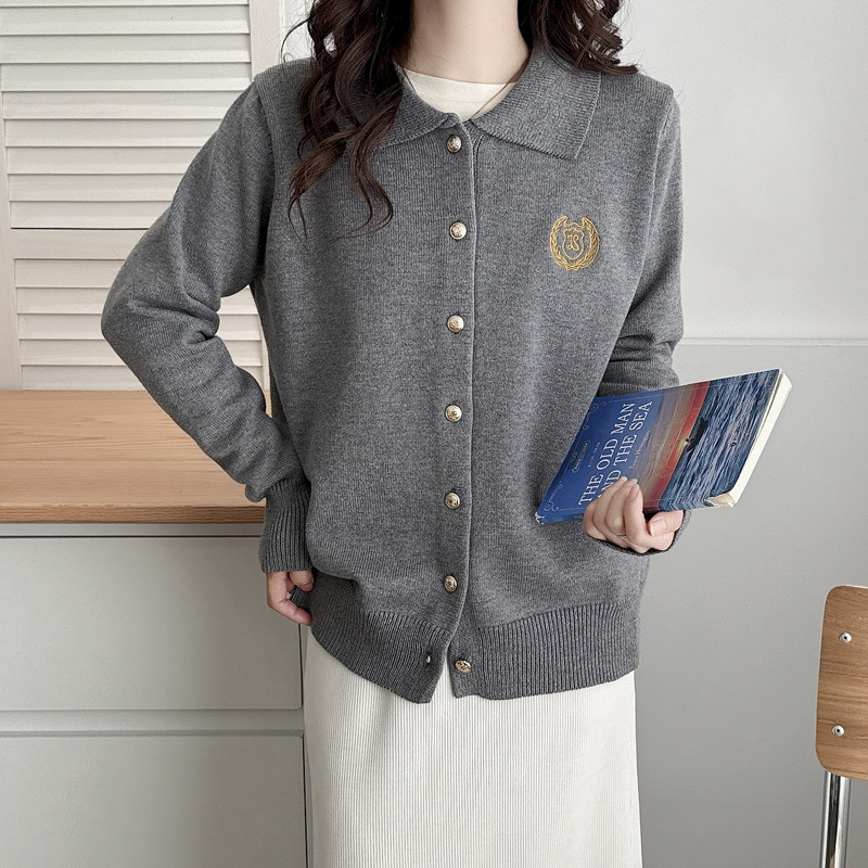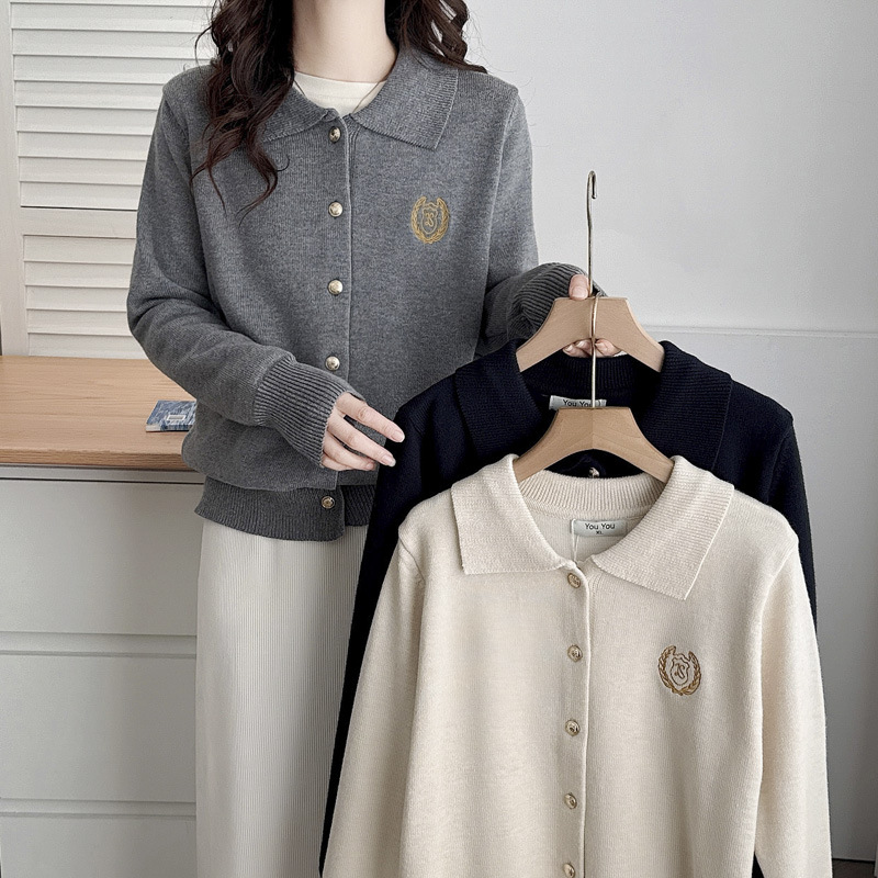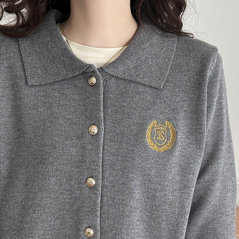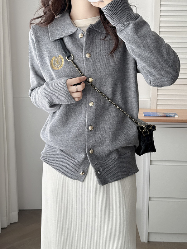 Трикотажный свитер большой размер женский толстый мм кардиган осень-зима 2024 новый 200 кг академическая вышивка с отворотом свитер куртка
